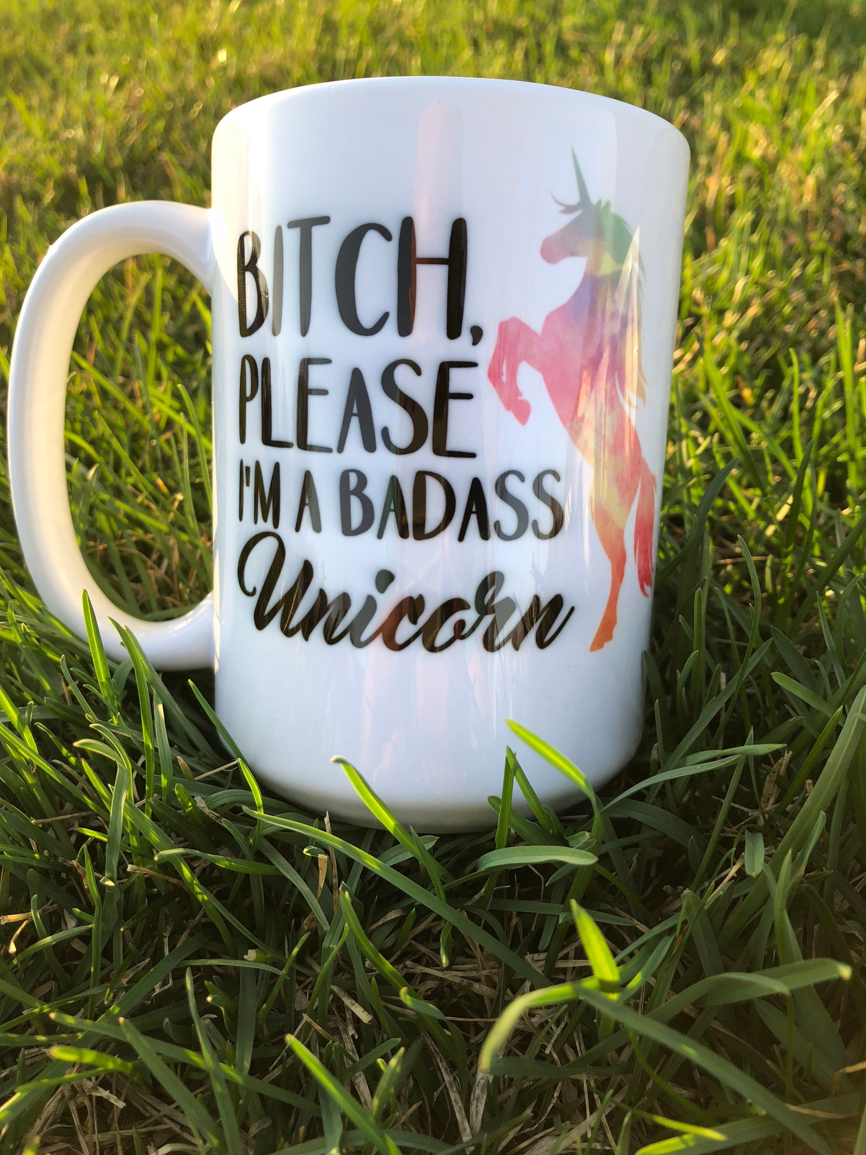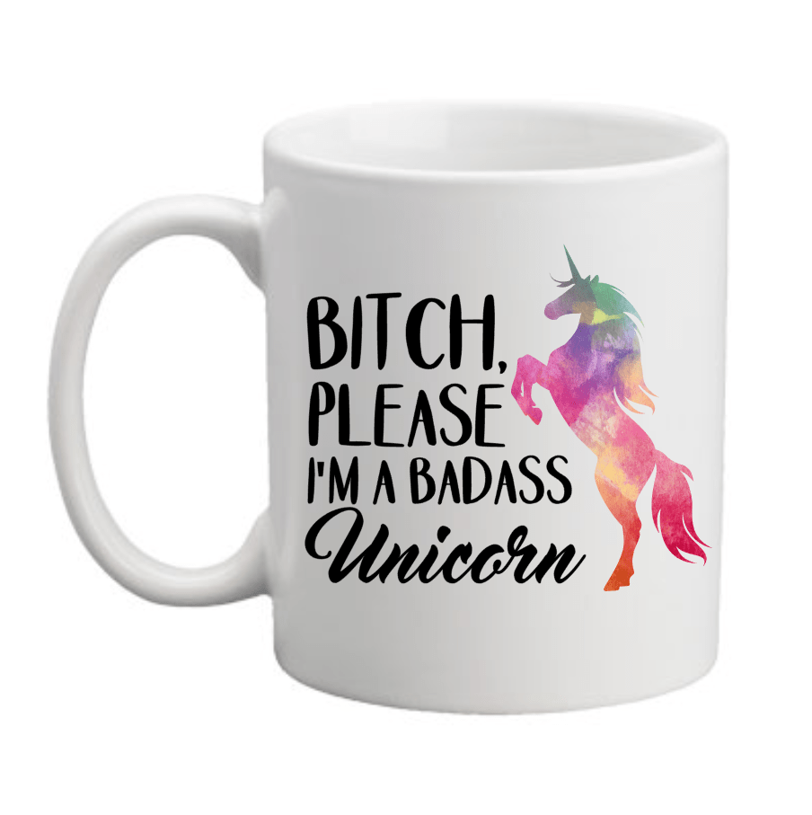 "Bitch Please I'm A Badass Unicorn" printed on a 15oz coffee cup. These premium coffee mugs feature a glossy surface with a beautiful full color image printed onto it. It features sturdy walls for safe, durable use. They are dishwasher safe, microwave safe and lead free.