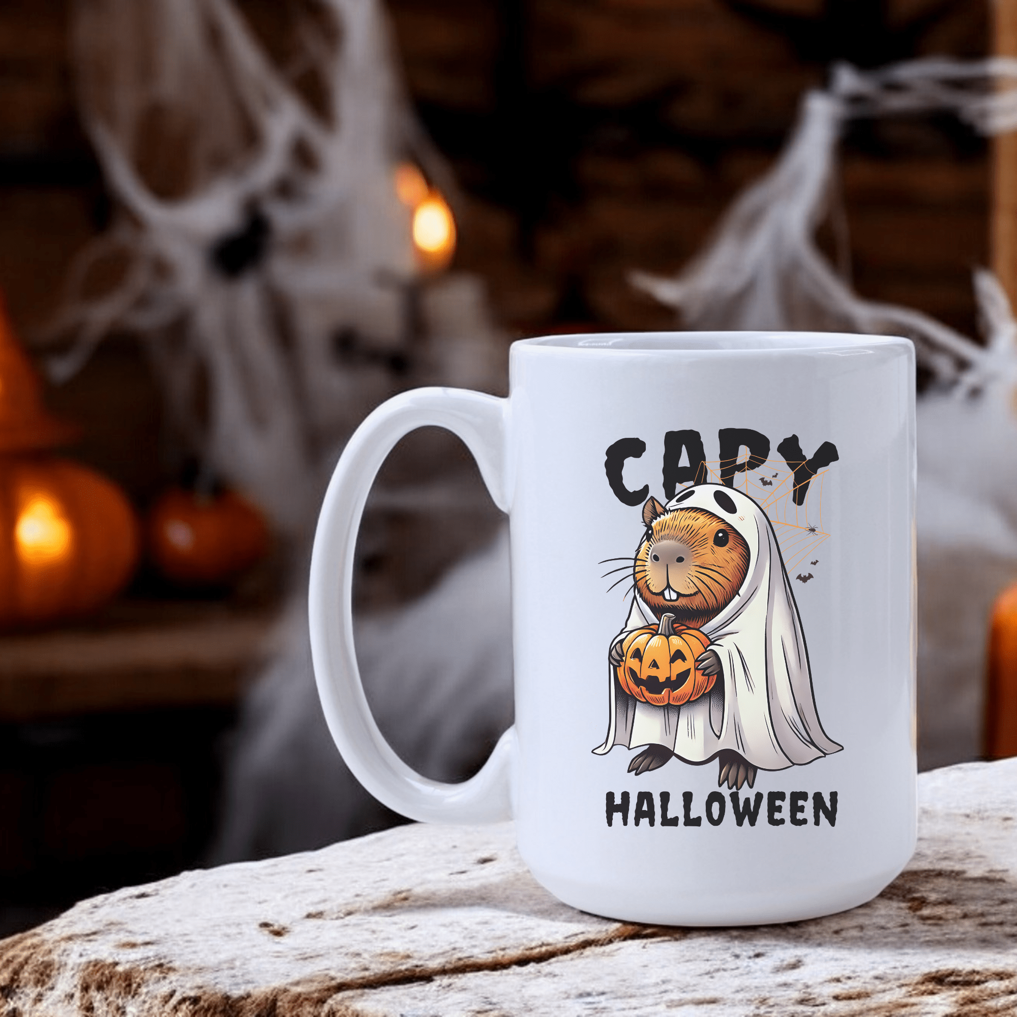 Cuddle up with some spooky fun with our Capy Halloween Mug! This quirky mug features a capybara dressed in a ghost costume, holding a pumpkin. Perfect for adding some playful charm to your morning coffee or tea. (Boo-yah! 🎃)