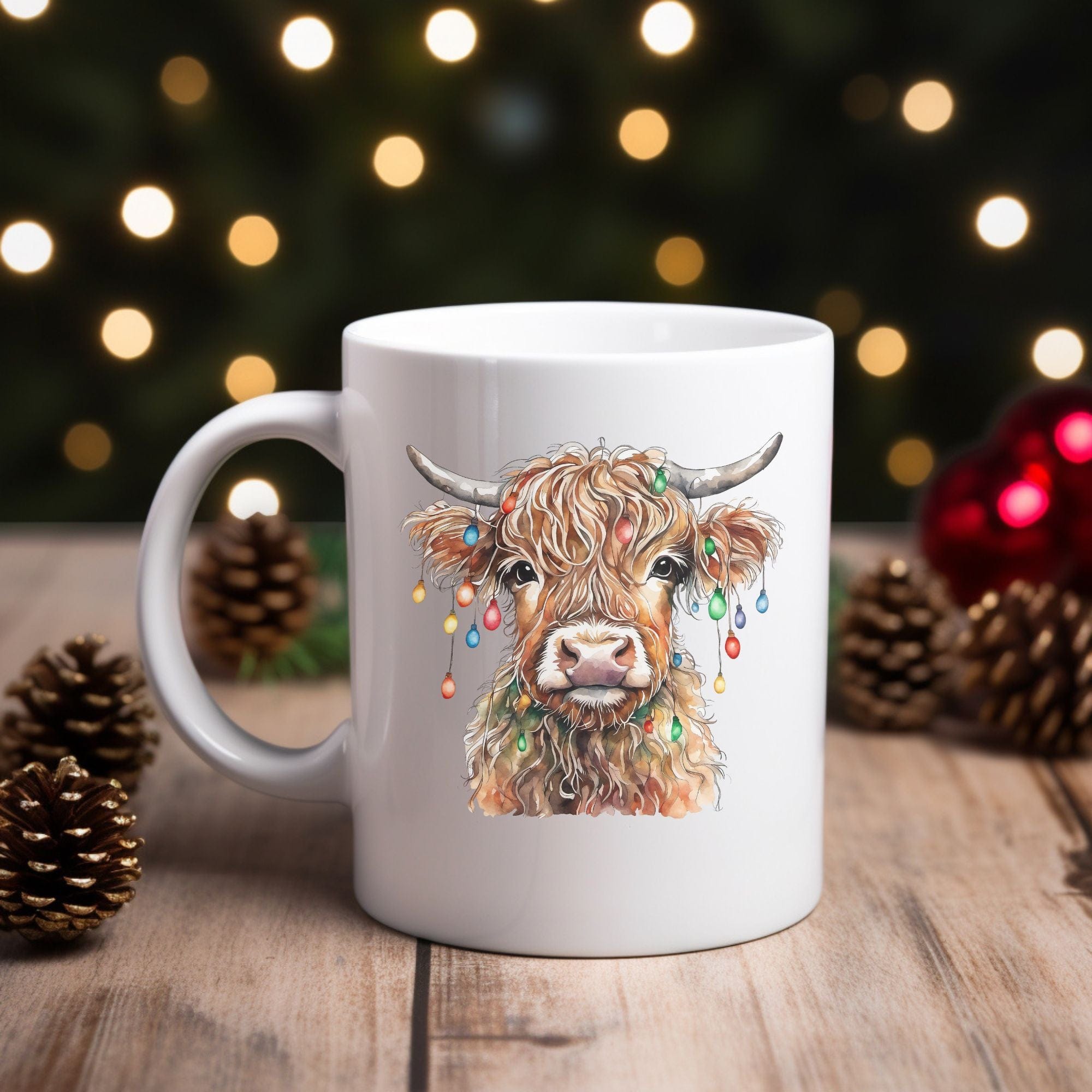 How cute is this baby highland cow with christmas lights?! Perfect for your holiday coffee!