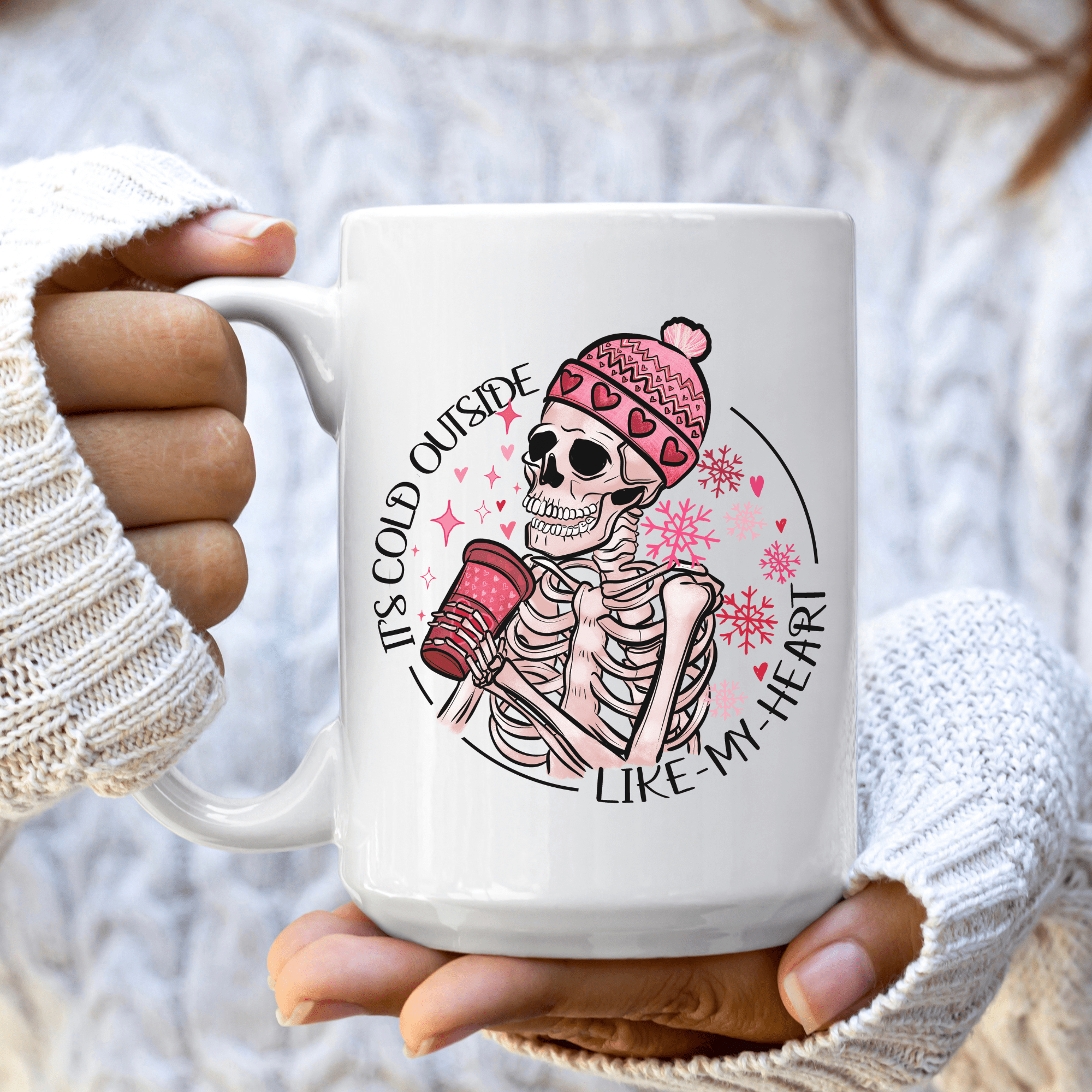 It's Cold Outside Like My Heart. - Funny Skeleton design holding a mug.