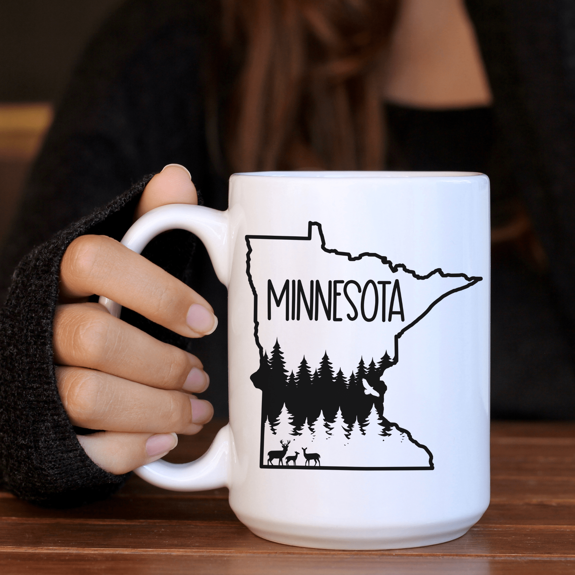Start your day with a cup of coffee in this Minnesota Trees coffee mug! Its beautiful design will remind you of the state's natural beauty with each sip. Enjoy the scenery and warm beverage, making each morning special!