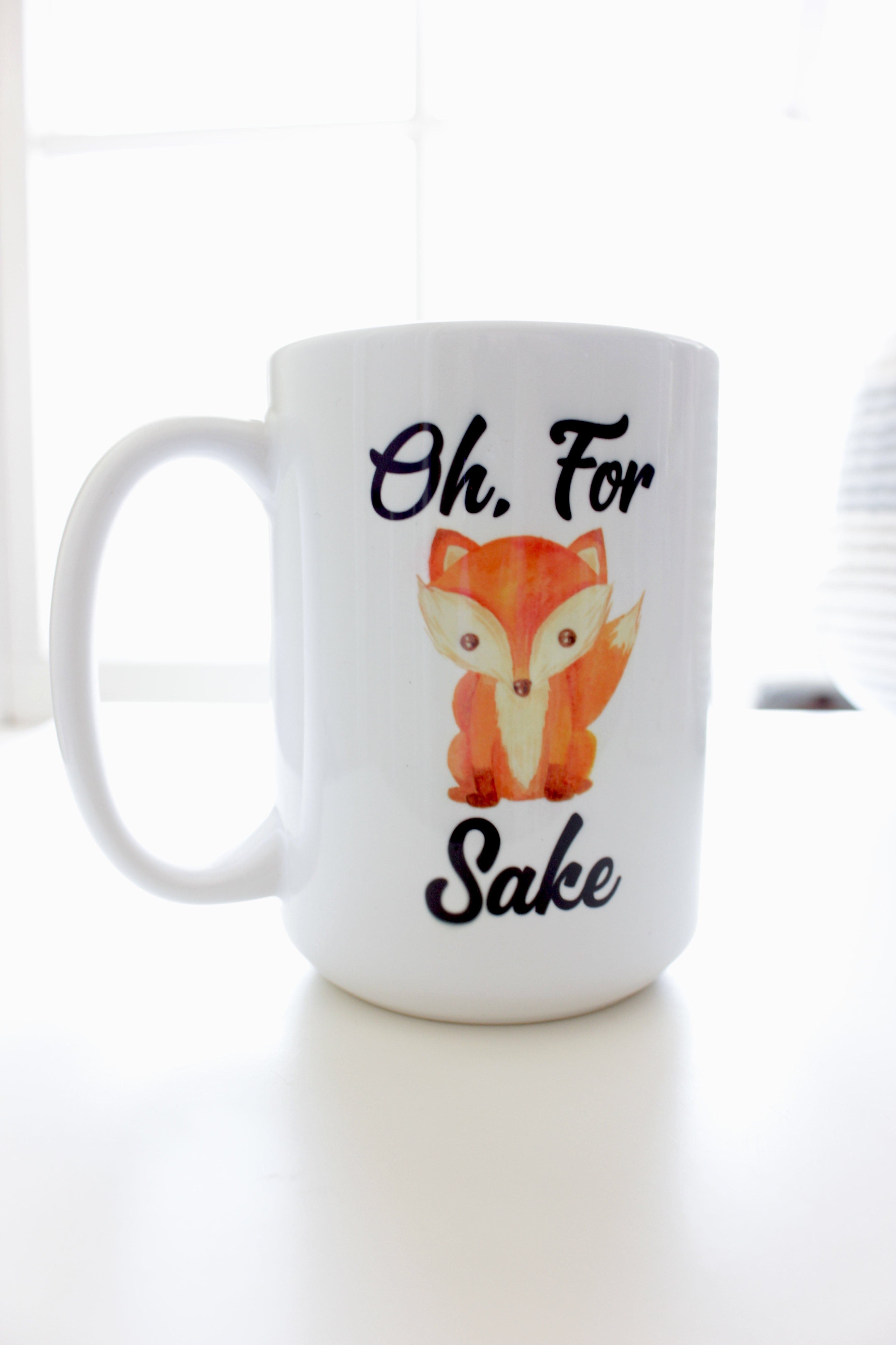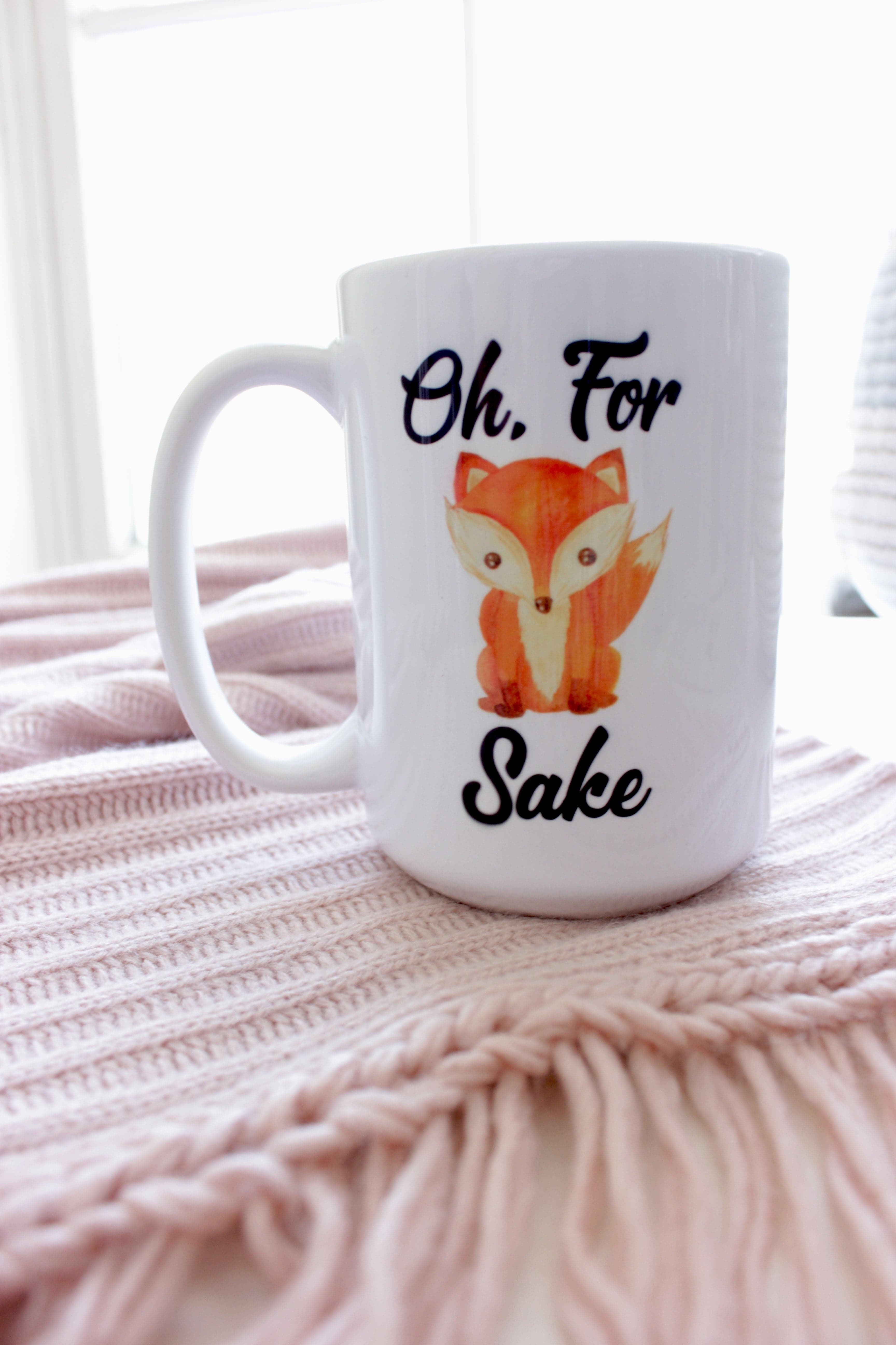 Oh For Fox Sake printed on a 15oz coffee mug. These premium coffee mugs feature a glossy surface with a beautiful full color image printed onto it. It features sturdy walls for safe, durable use. They are dishwasher safe, microwave safe and lead free.
