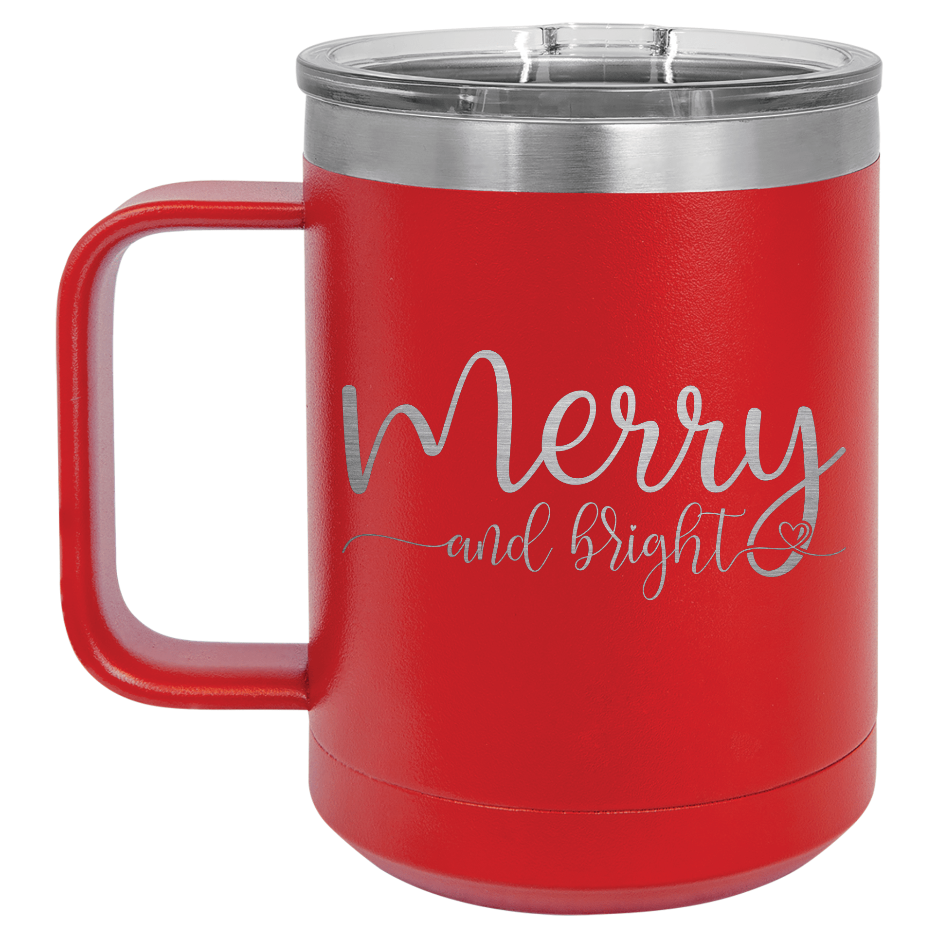 Stay merry & bright with this festive 15oz insulated mug! Perfect for your holiday cheer, this hot cup is engraved with a classic holiday design to keep your favorite beverages toasty 'til the morning light. Celebrate in style!