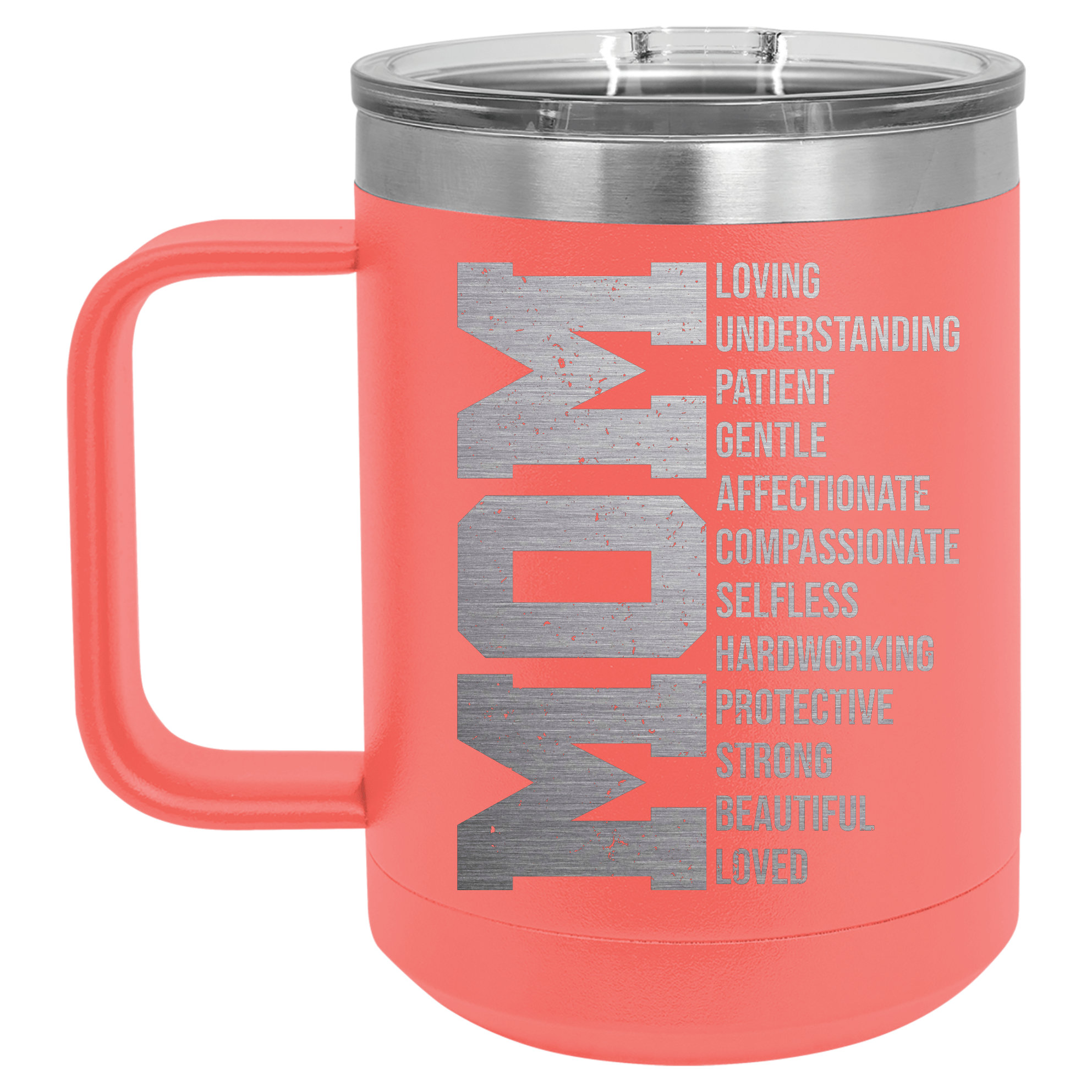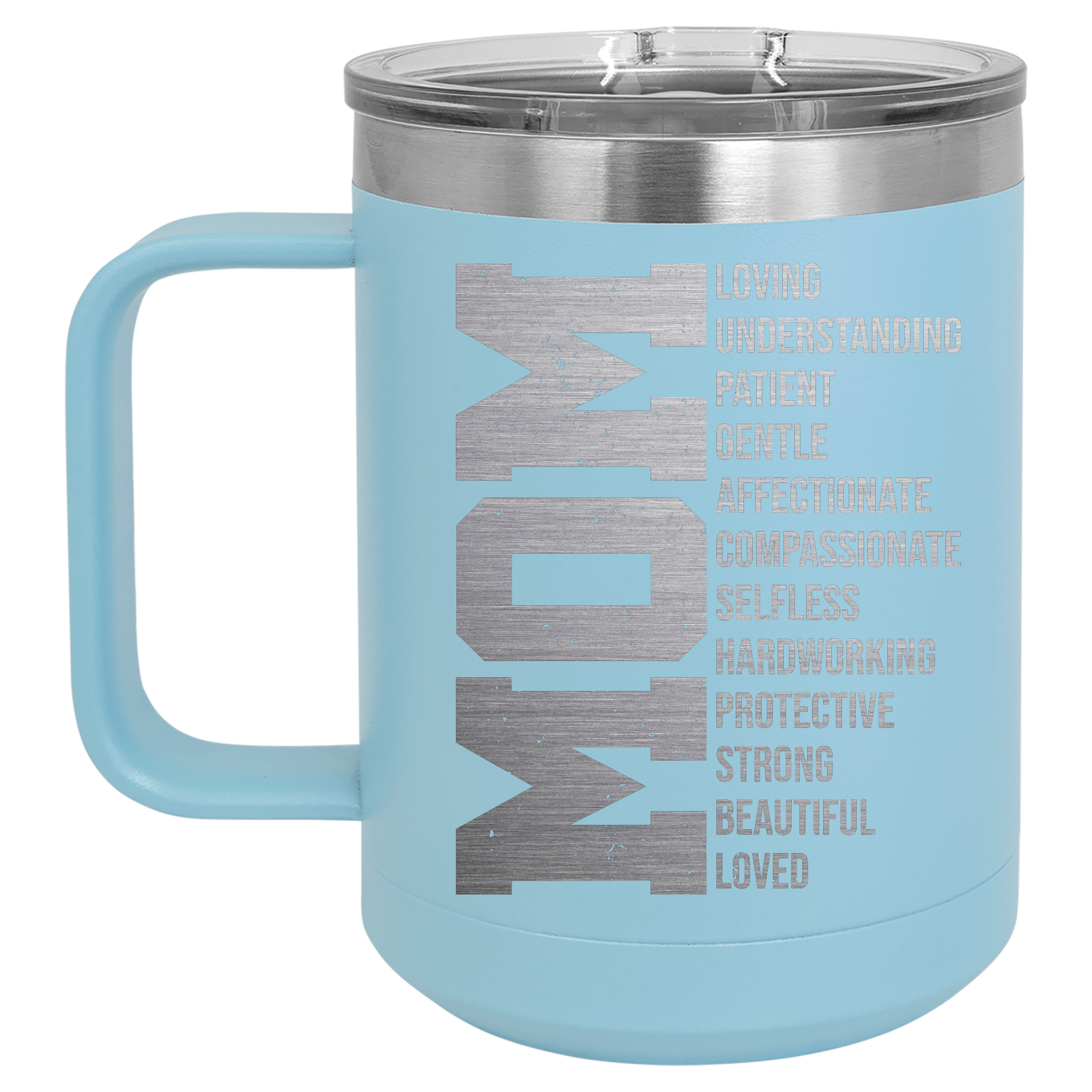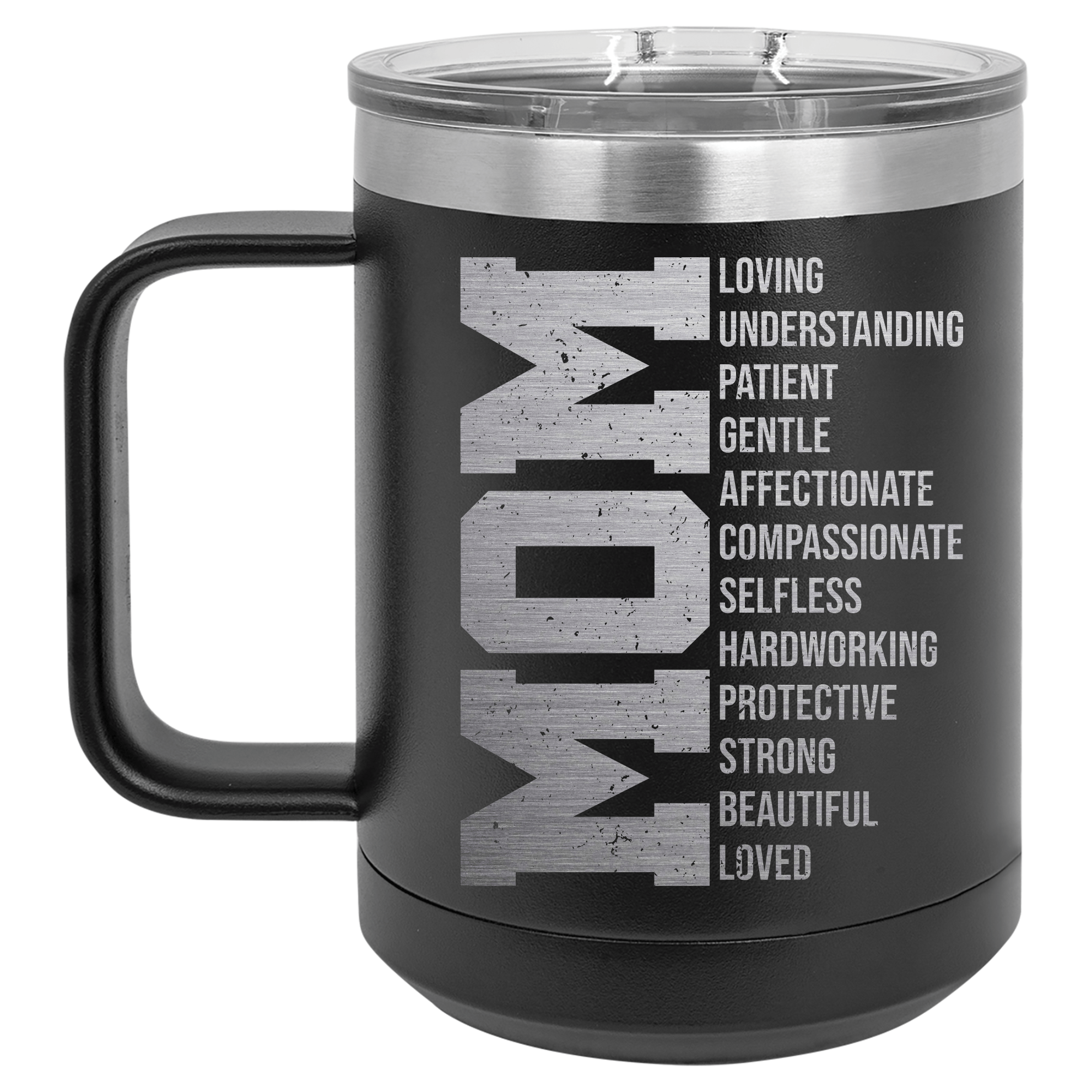 Show your Mama some love with this insulated 15oz mug, featuring an engraved Mom Definition design. Keep her favorite hot beverages warm for hours, the perfect gift for any special occasion!