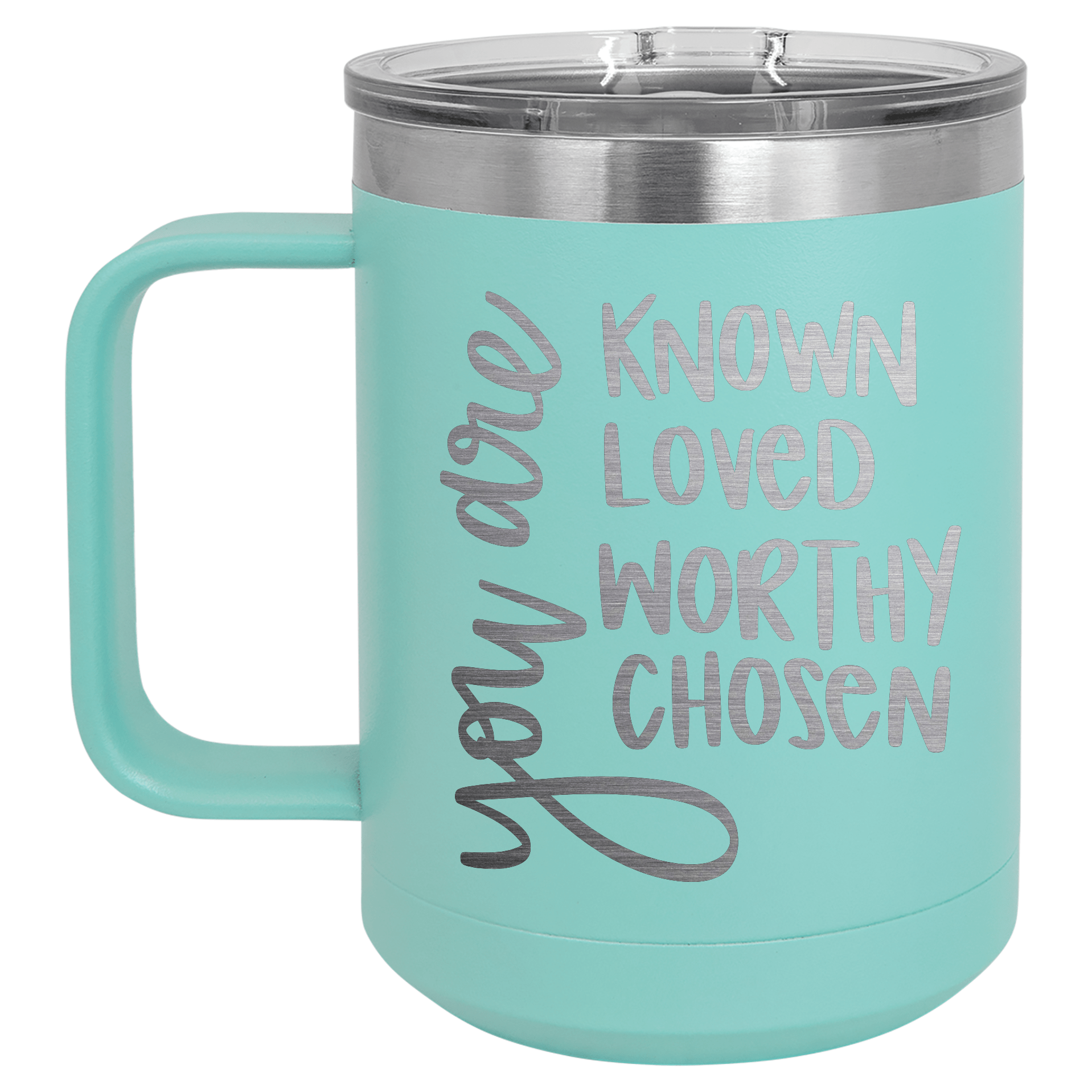 You Are Known Loved Worthy Chosen | Engraved 15oz Insulated Mug