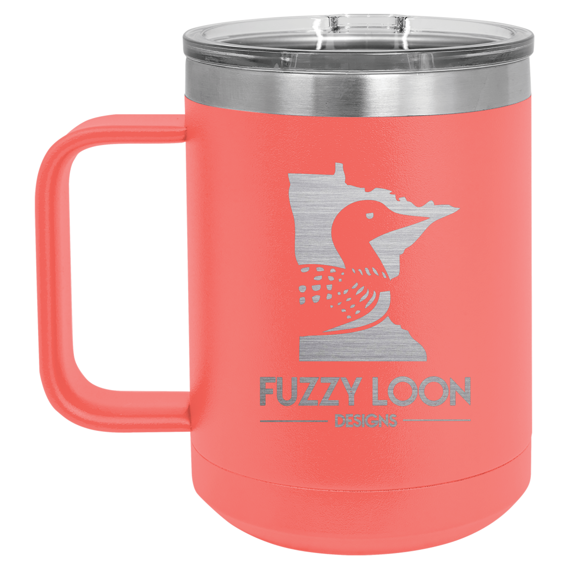 Personalize your 15oz handled tumbler with custom engraving! Upload your image to create a unique, engraved tumbler designed just for you. Please note that for this style of tumbler, your artwork must be in black and white, as grayscale or color images do not engrave well. If the artwork doesn't meet the requirements, we may need to cancel the order. If you're unsure about your design, feel free to email us at info@fuzzyloondesigns.com before placing your order.