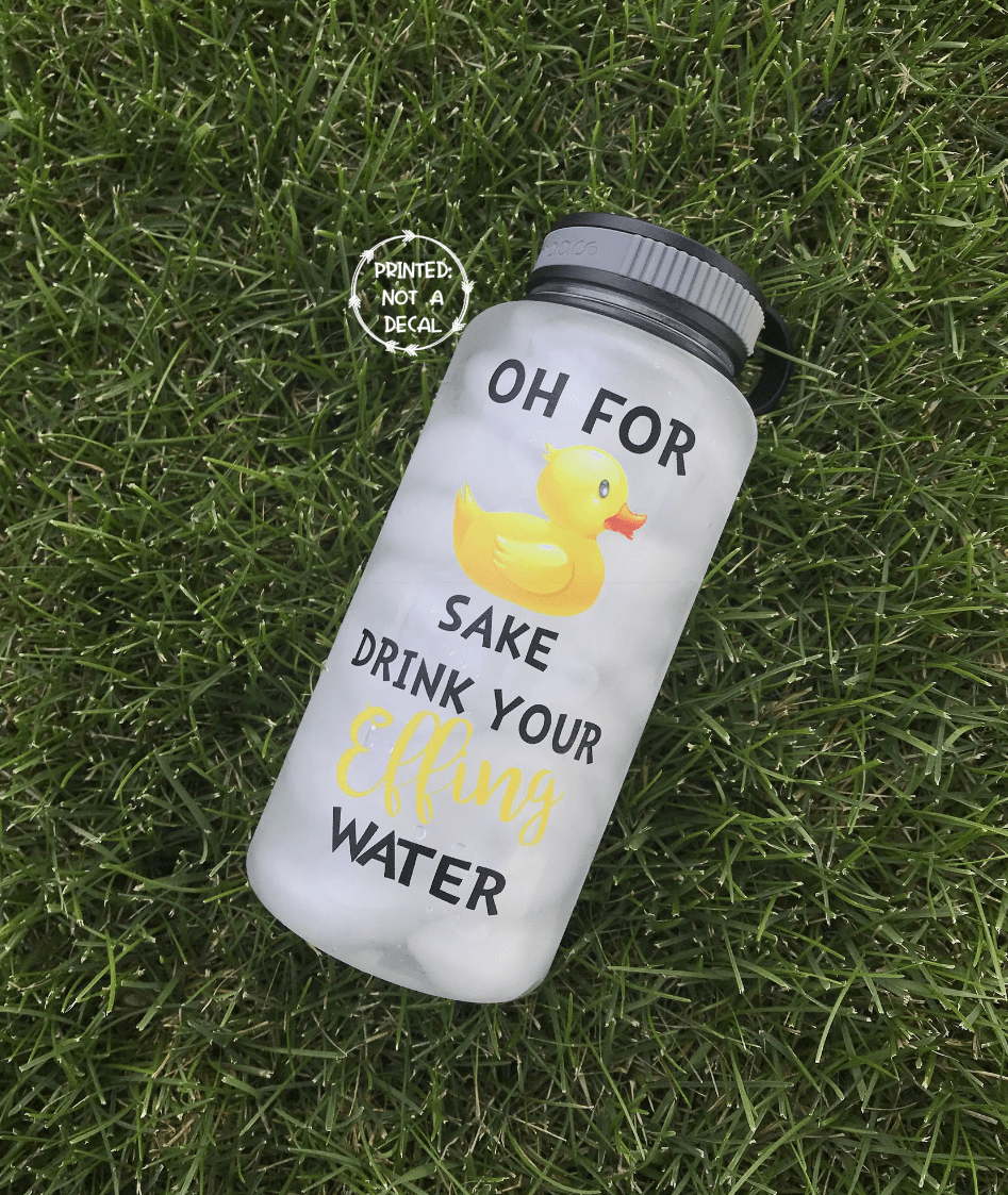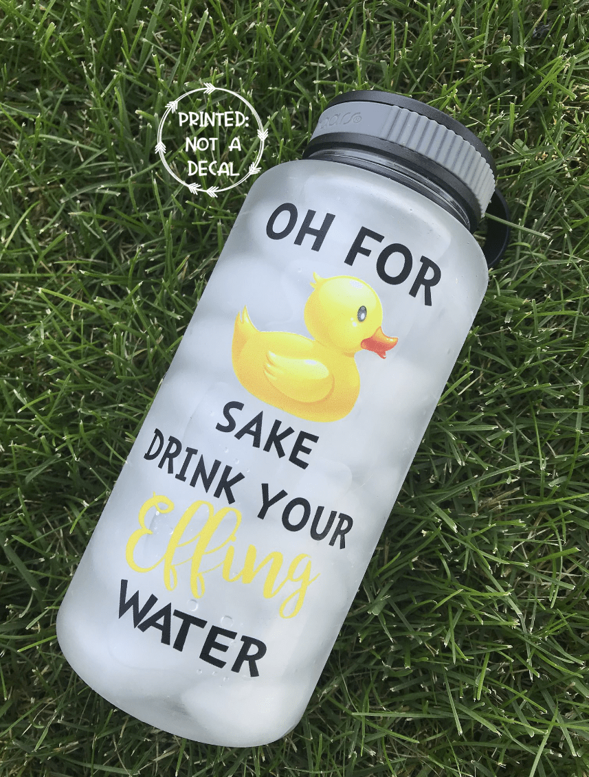 For Duck Sake - Printed on a CLEAR or GREY Water Bottle.