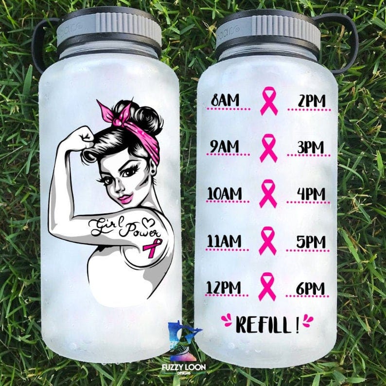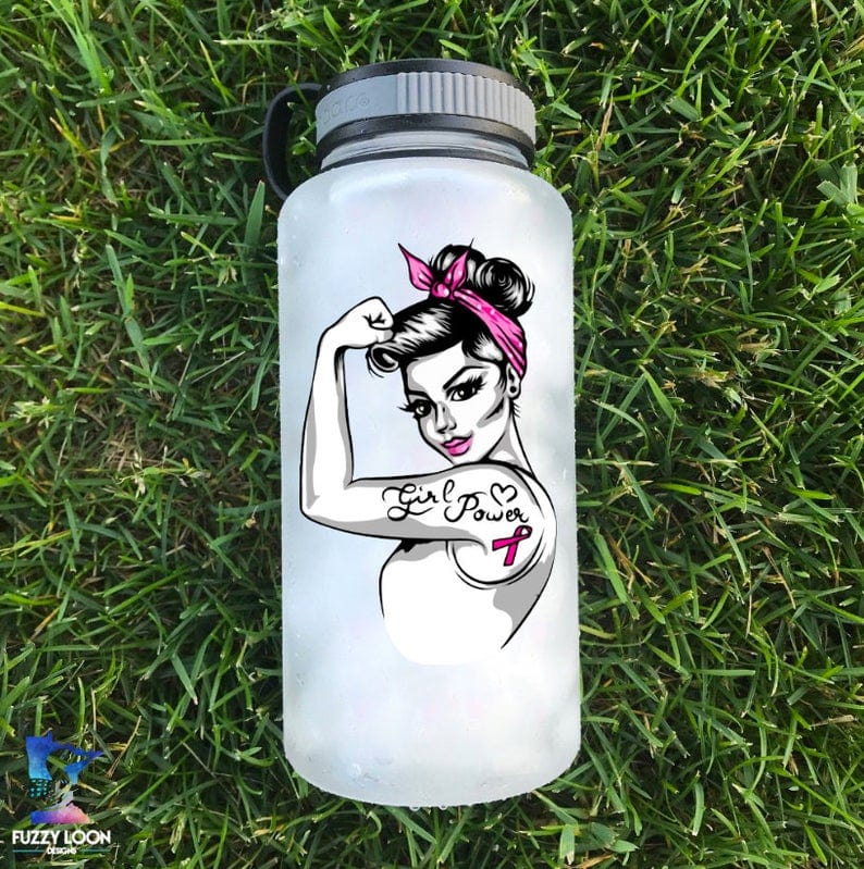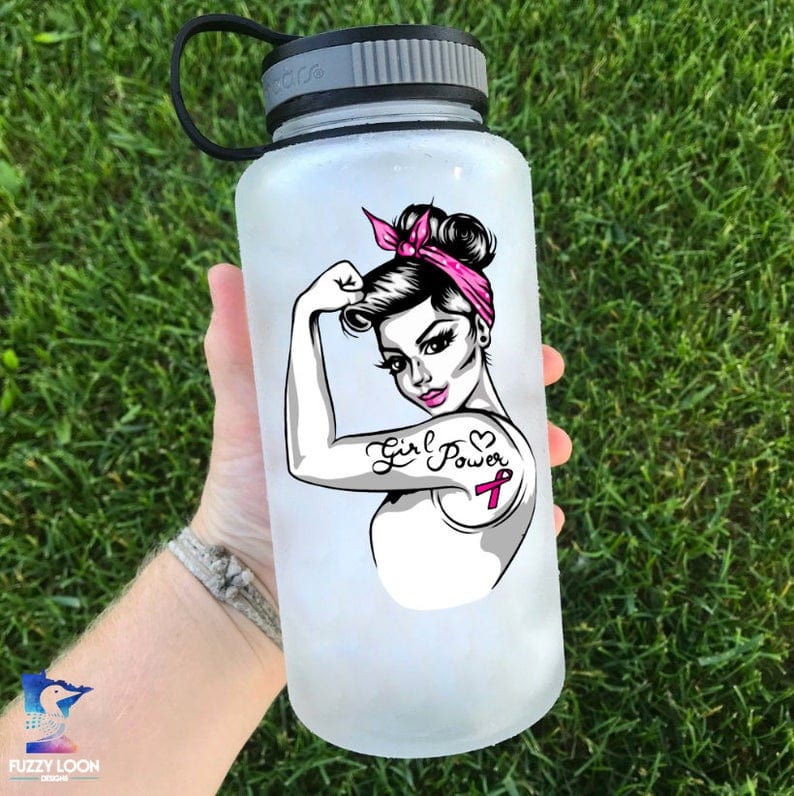Girl Power Pink Ribbon Water Bottle | 34oz