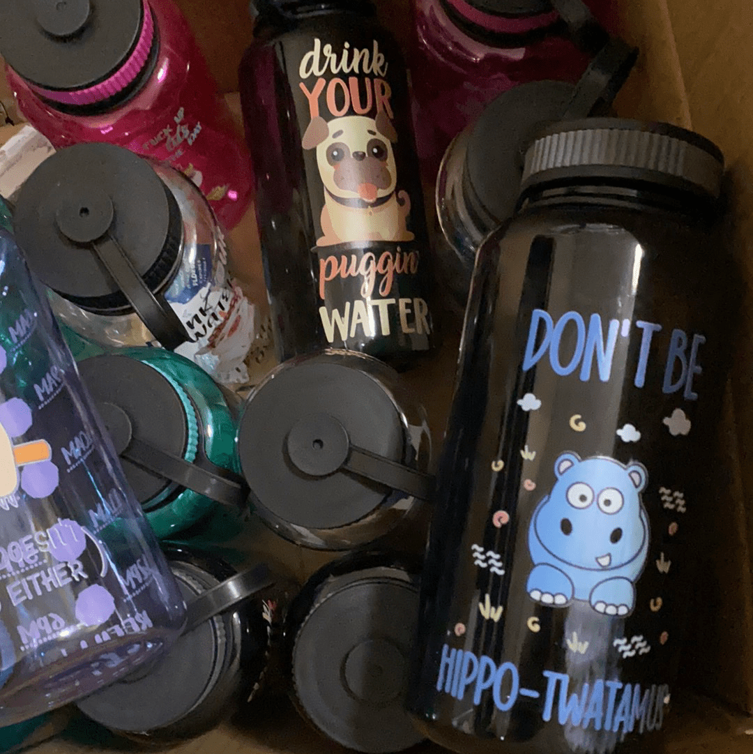 This listing is for our grab bin of misprint water bottles! We know that sometime it doesn't matter what it looks like and people just want a fun water bottle. We want to offer these misprinted water bottle to you at below cost, just to save them from being put in the recycling.
