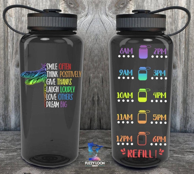 Need to drink more water!? The water table on the back helps you drink your water all day long. This is the perfect water bottle for anyone looking to drink more water each day.