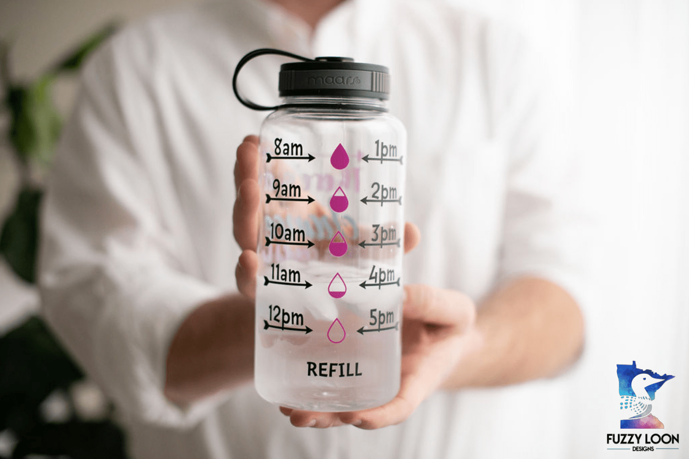 Need to drink more water!? The water table on the back starts at 8am and helps you drink your water all day long.
