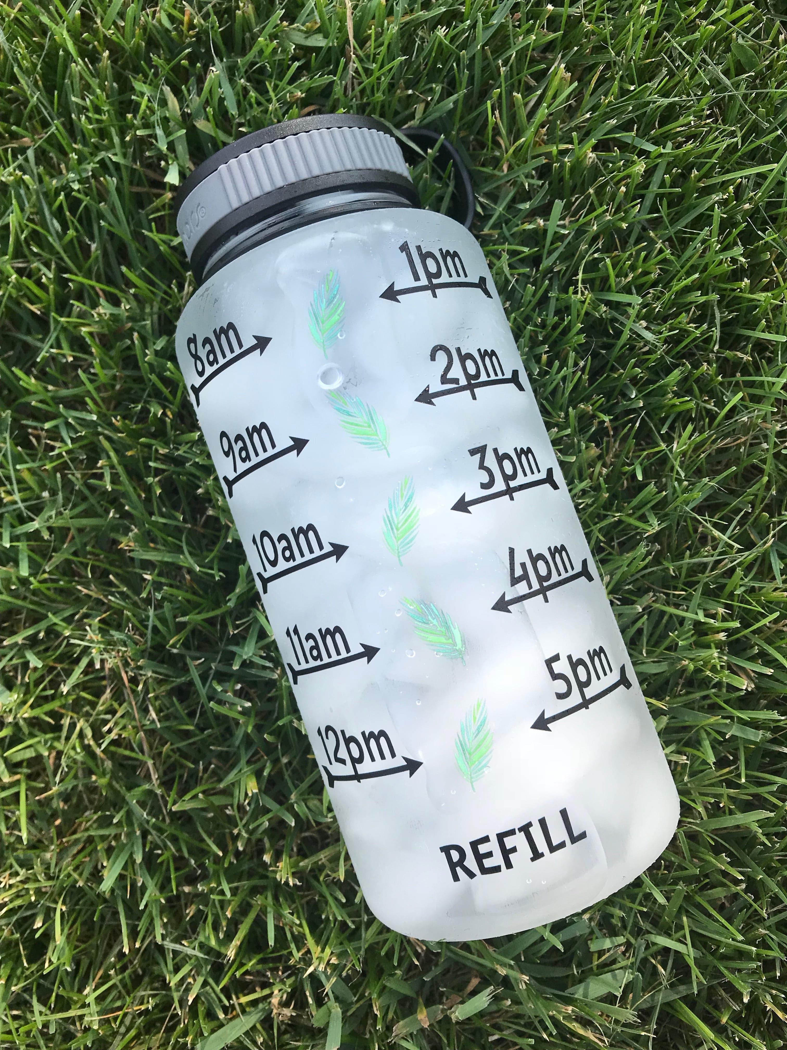 Need to drink more water!? The water table on the back starts at 8am and helps you drink your water all day long.