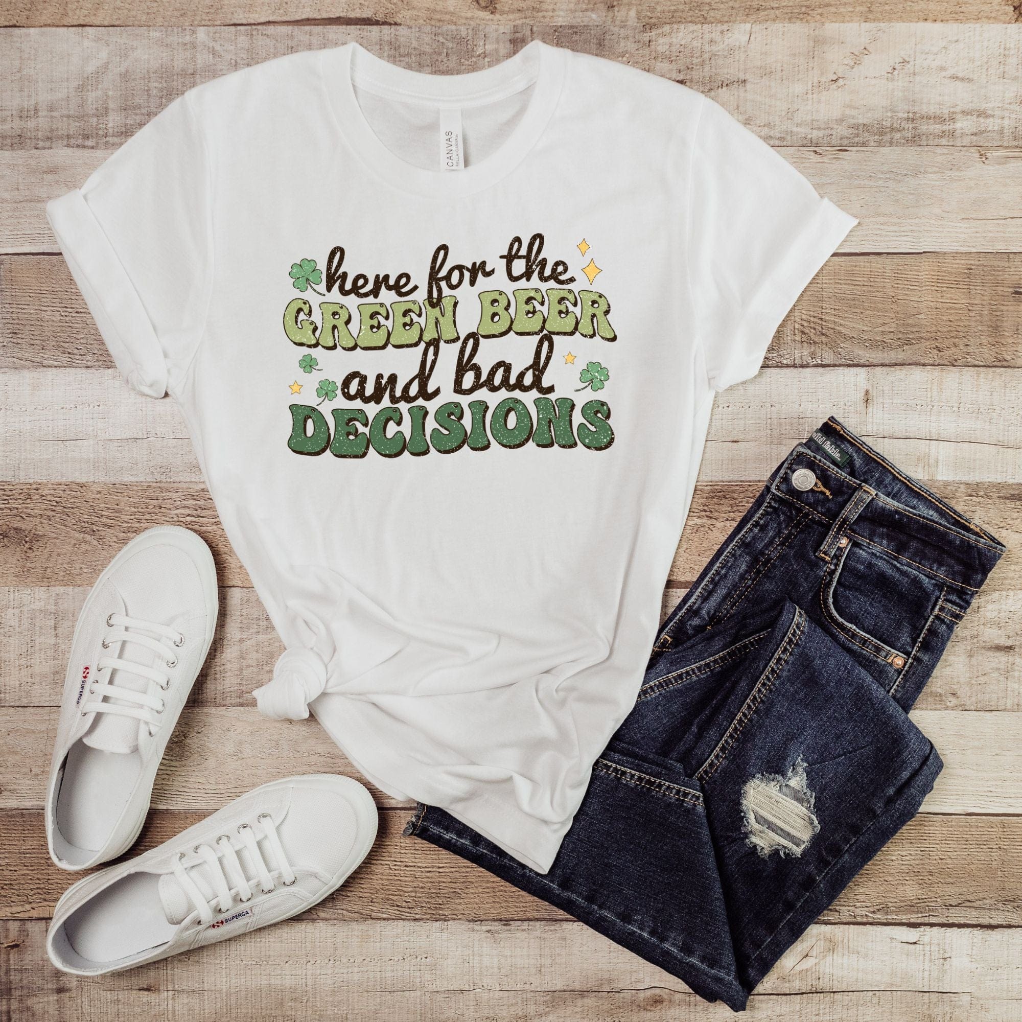 Here for the Green Beer and Bad Decisions St. Patrick's Day T-Shirt