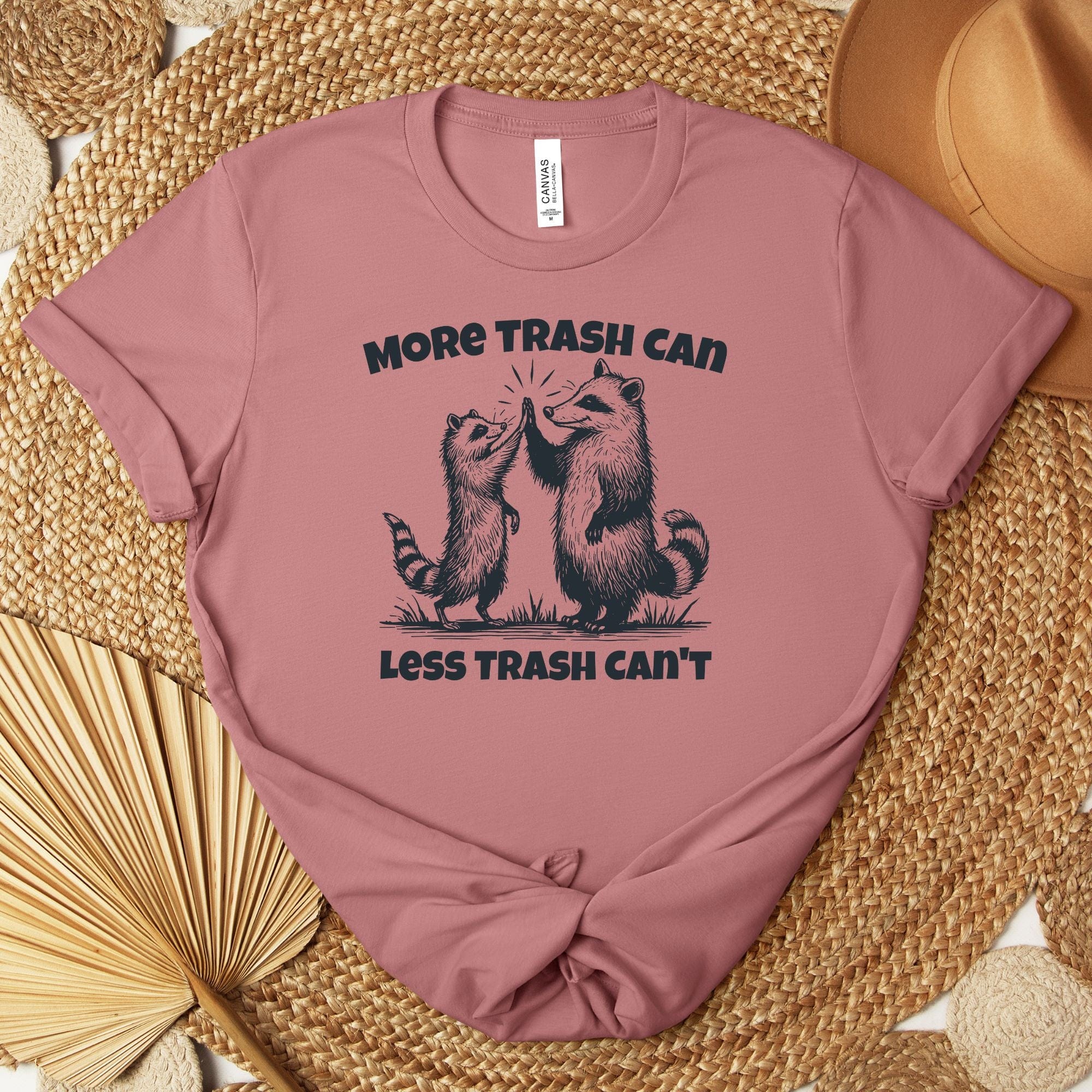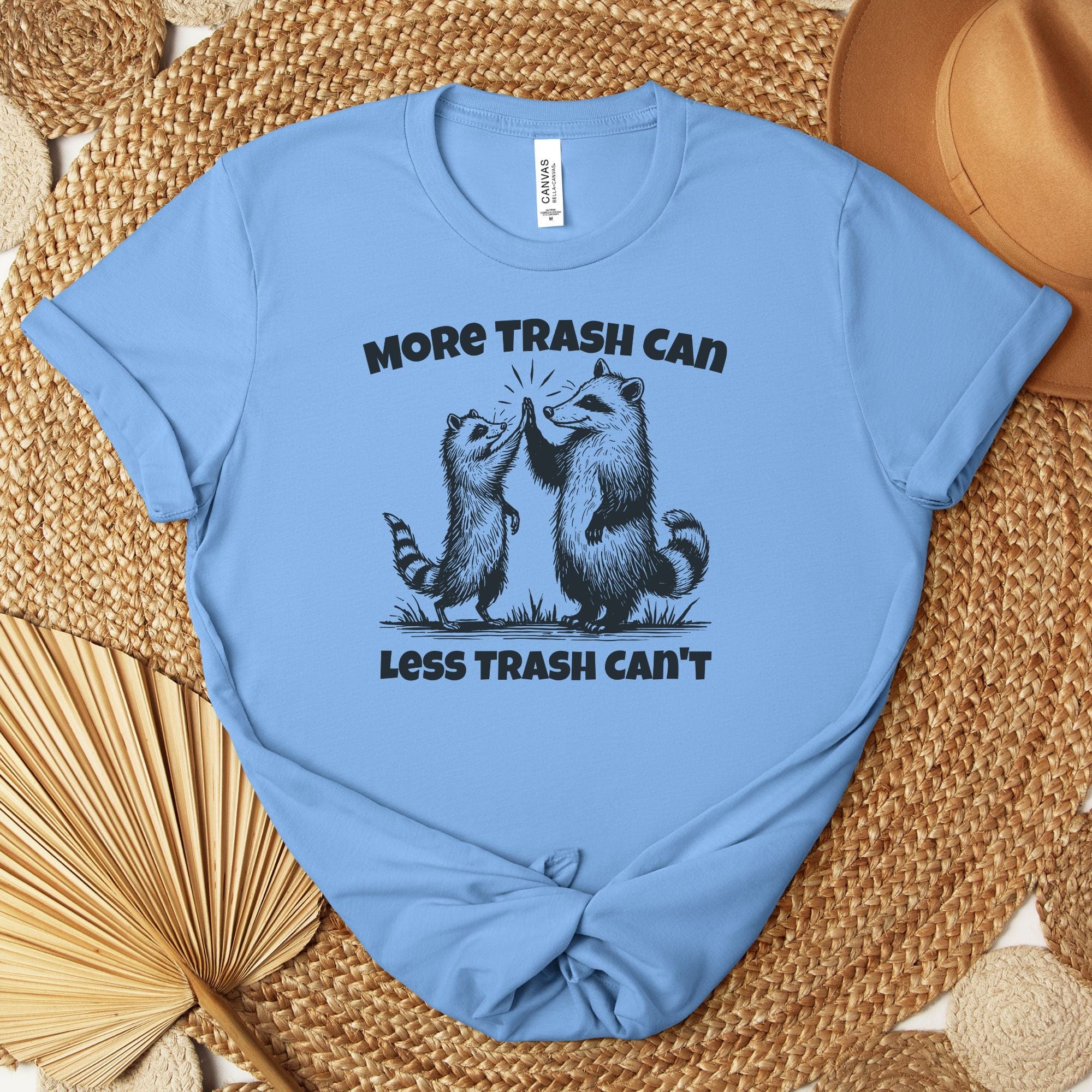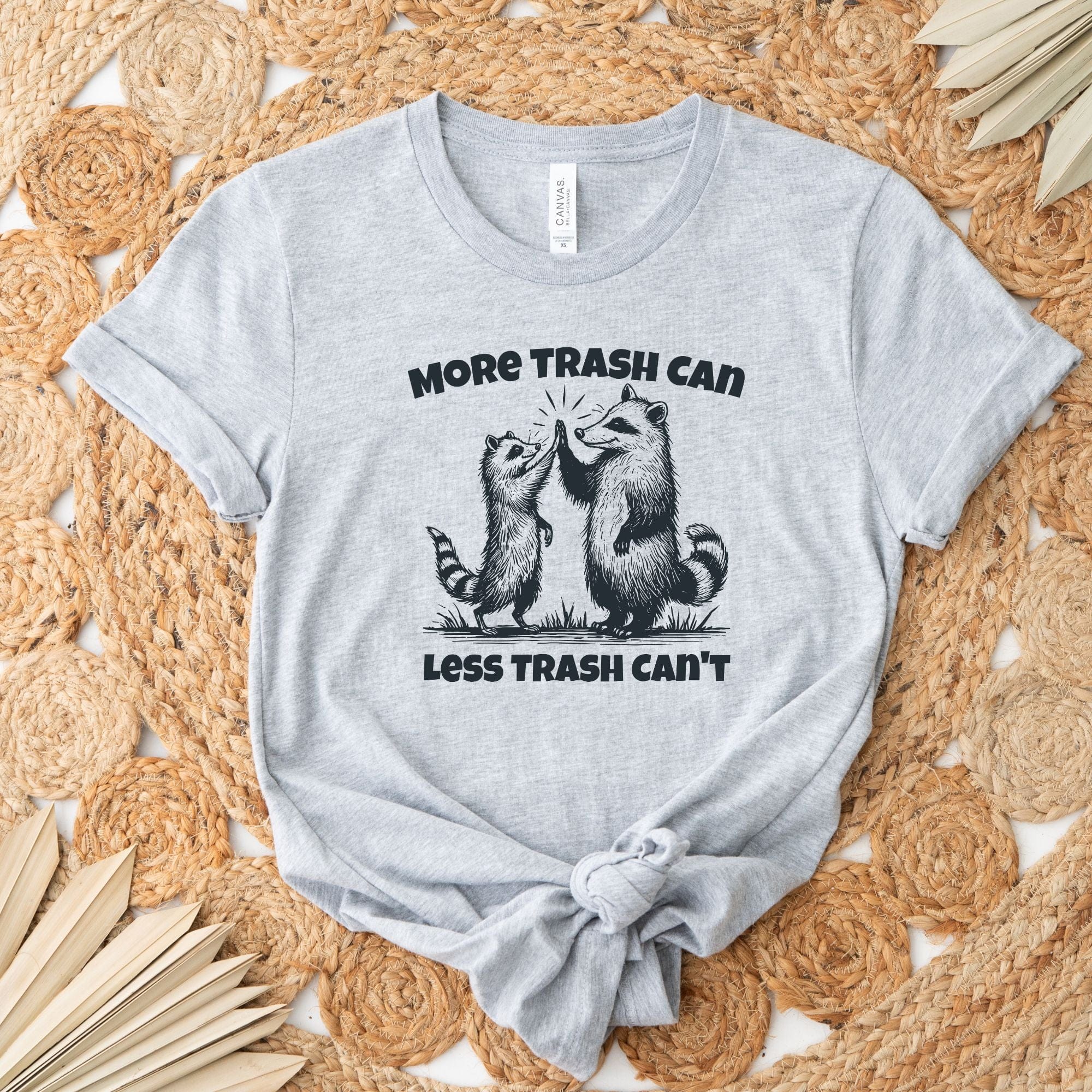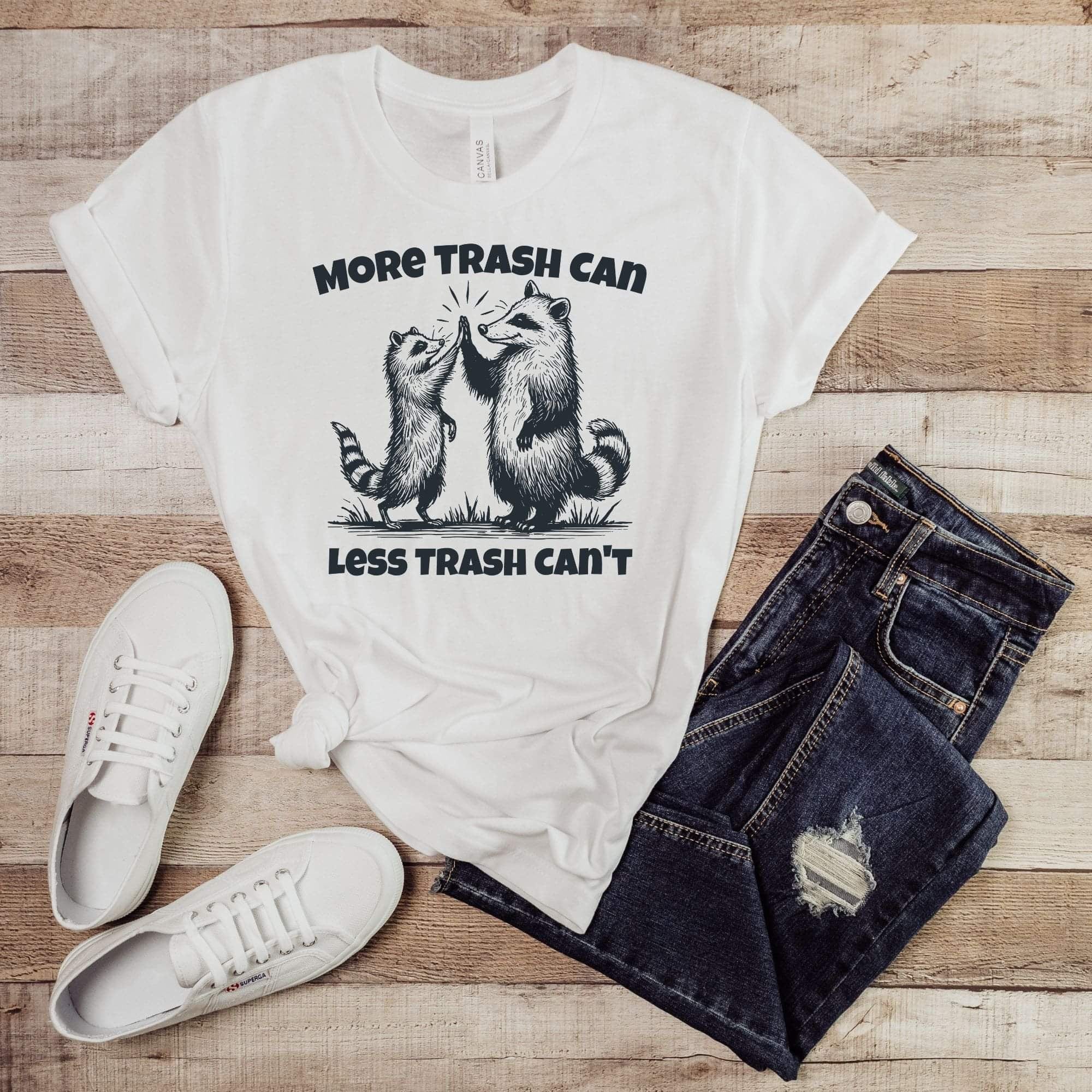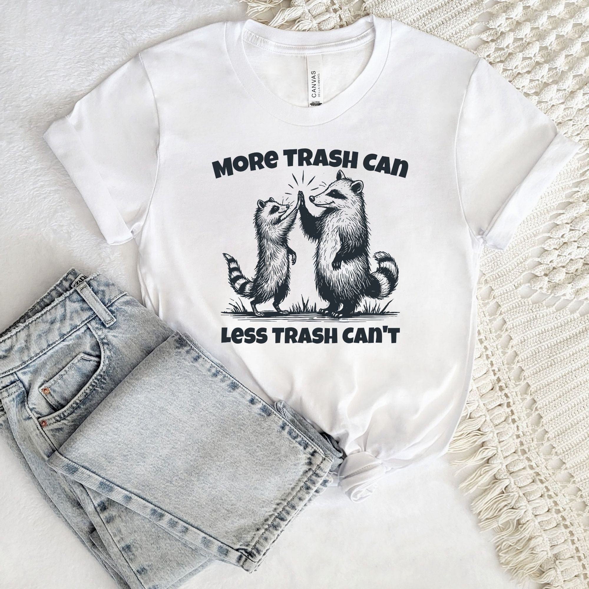 Unleash your inner raccoon with our More Trash Can Less Trash Can't Tee. This motivational shirt will inspire you to take on any challenge and achieve your goals, just like a determined raccoon.