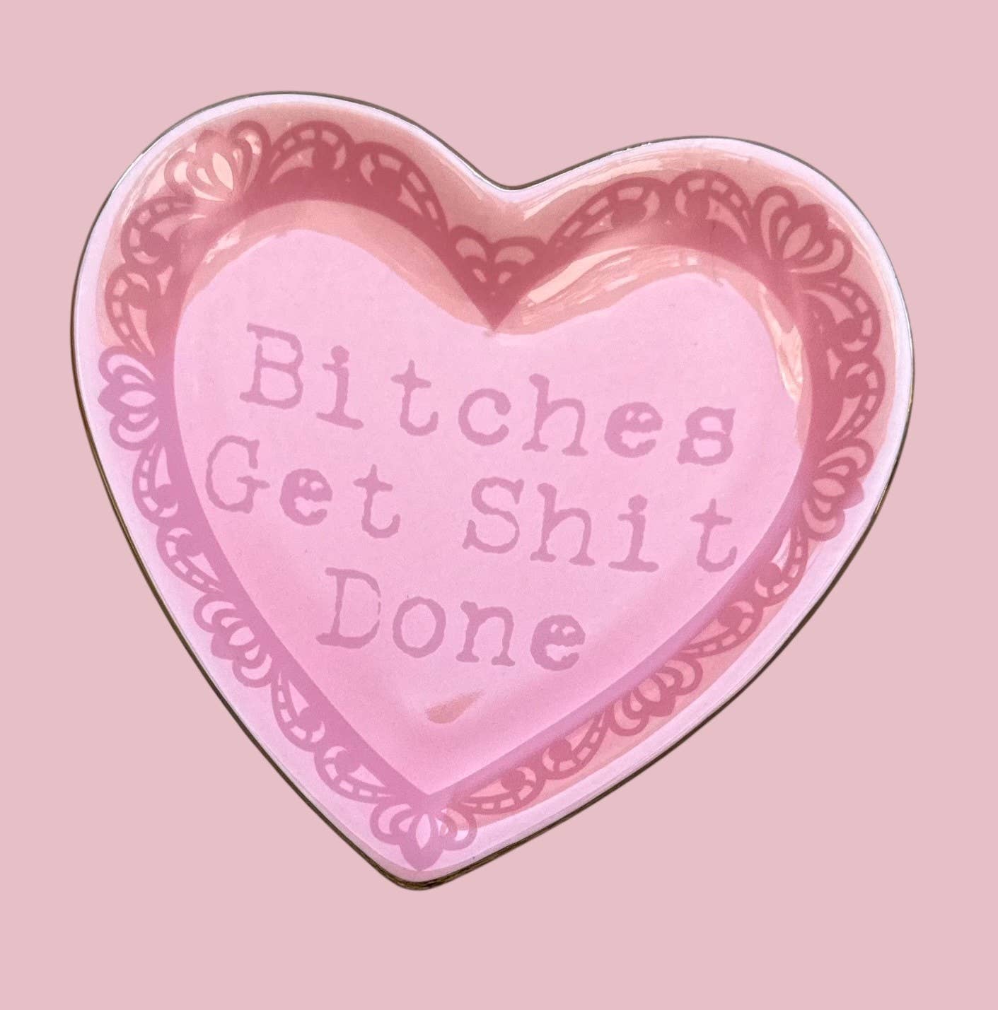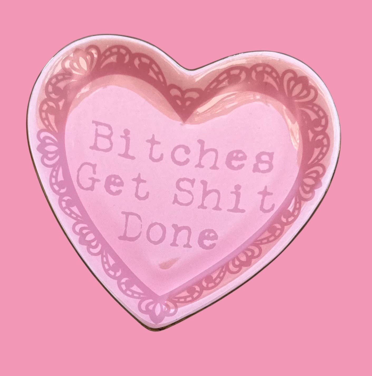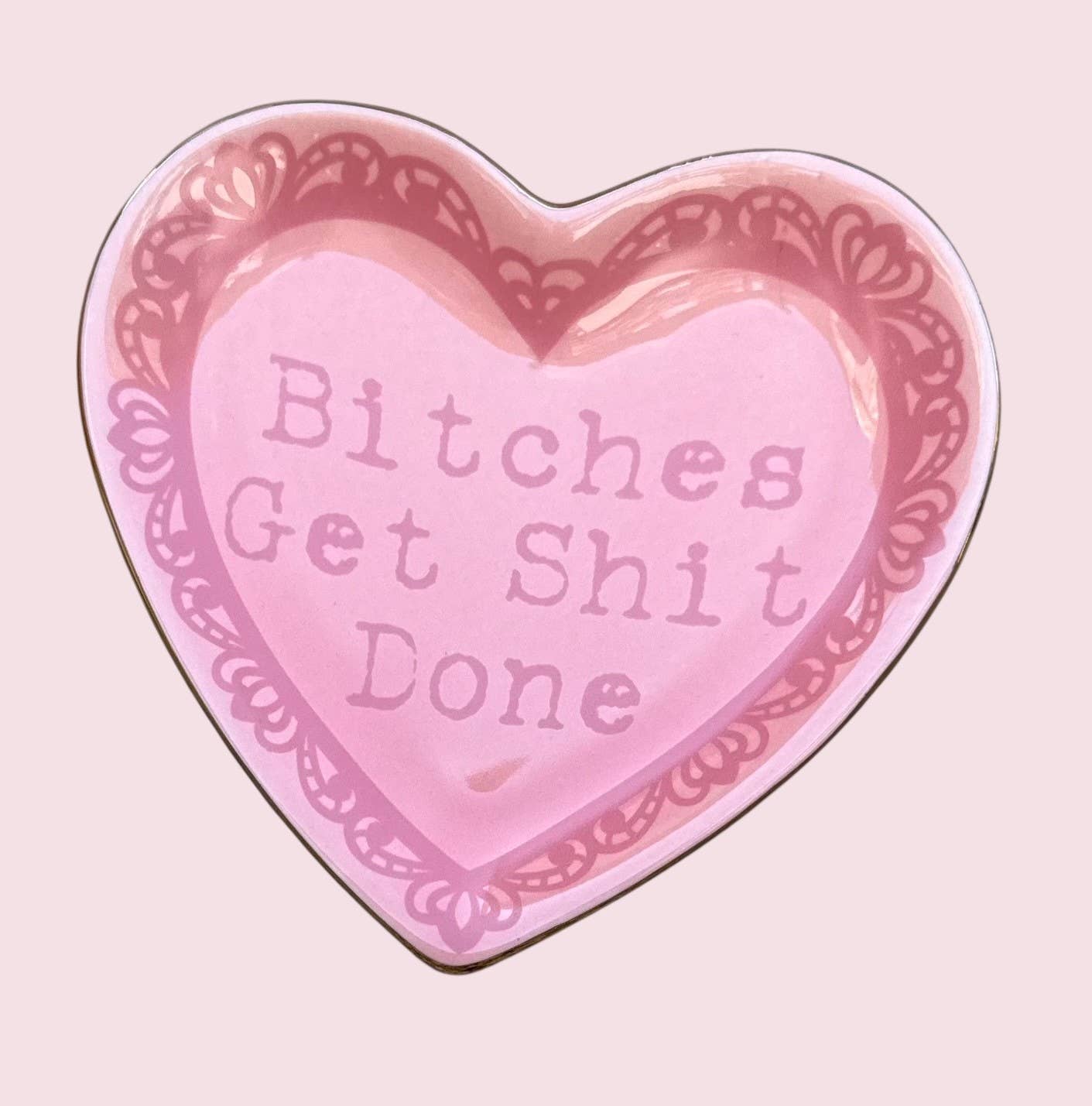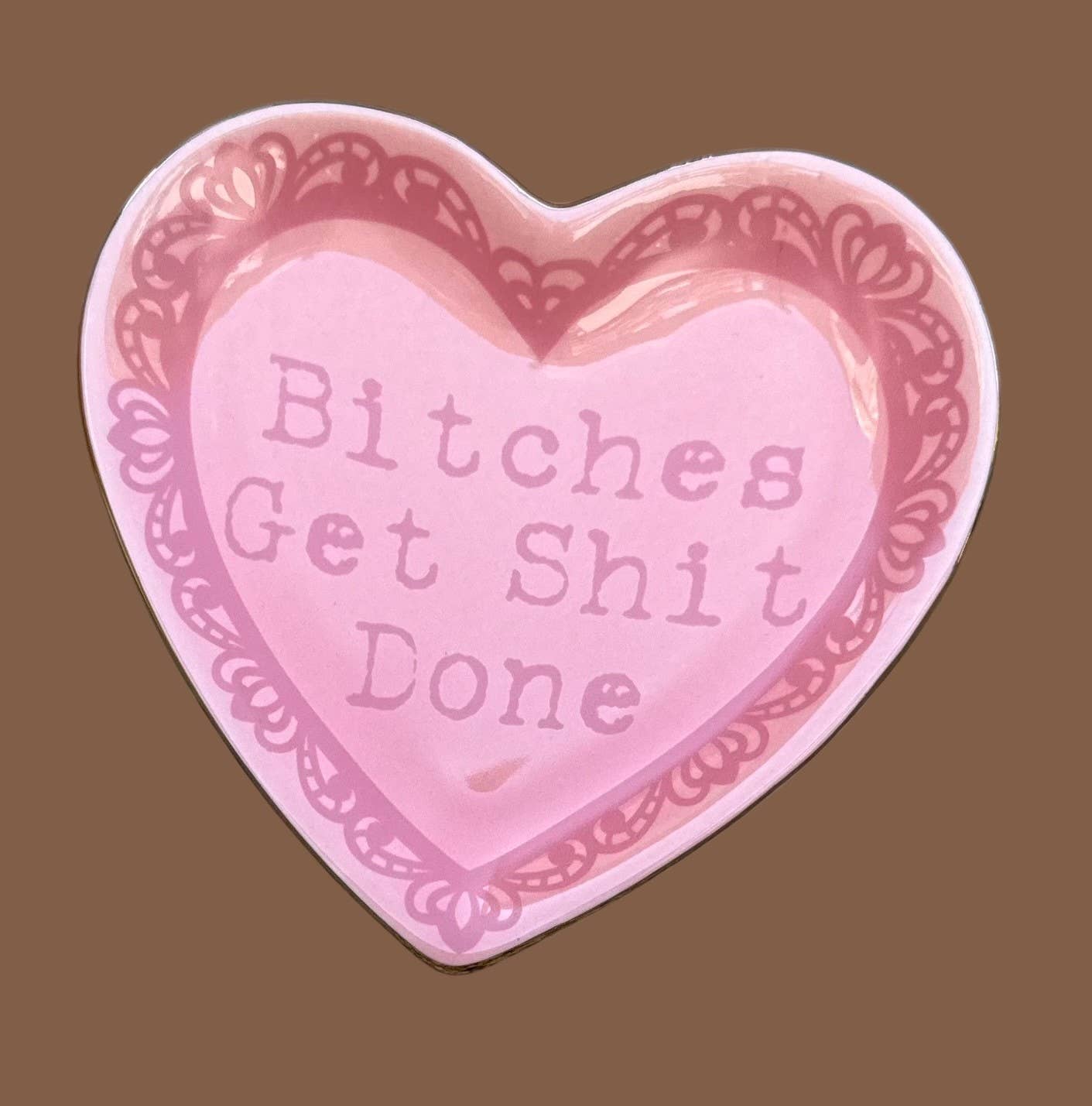 "Bitches Get Shit Done" Lace Heart Ceramic Trinket Dish