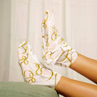 Give your feet a little TLC with these cozy, sock-style foot masks. Featuring a dreamy celestial print, each pair is infused with refreshing peppermint and ultra-rich shea butter to moisturize, soothe, and revive dry, tired, or travel-worn feet. A touch of palo santo adds calming, cleansing energy to help relieve tension and leave your soles feeling smooth and refreshed.