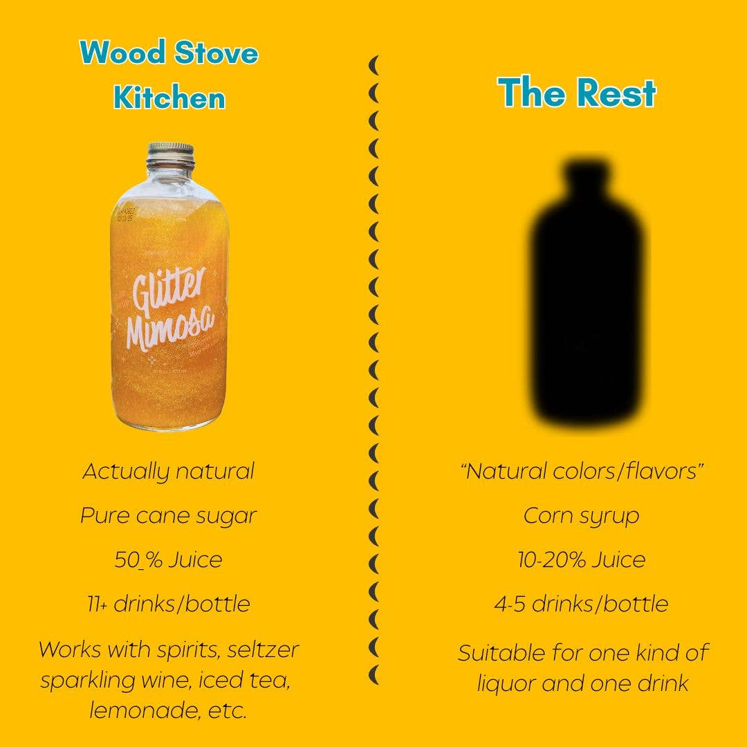 Get your sparkle on with our concentrated, glitter-infused Glitter Mimosa Mixer!