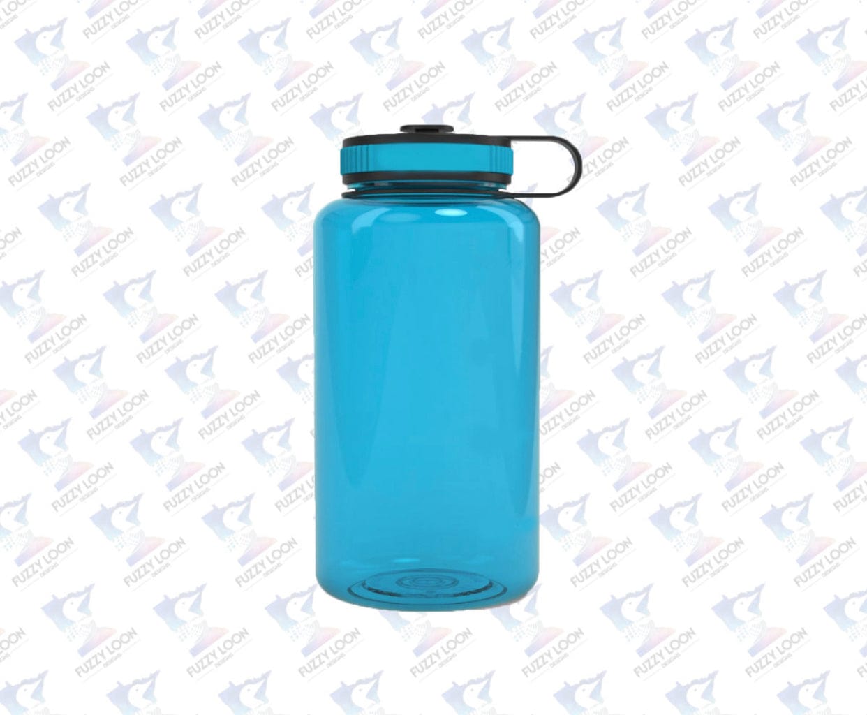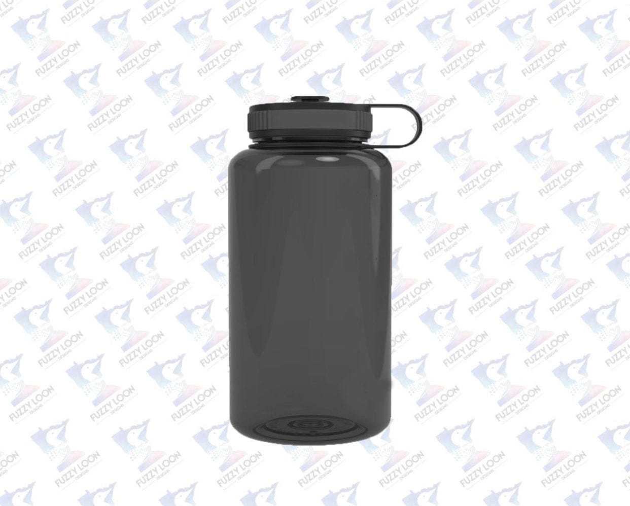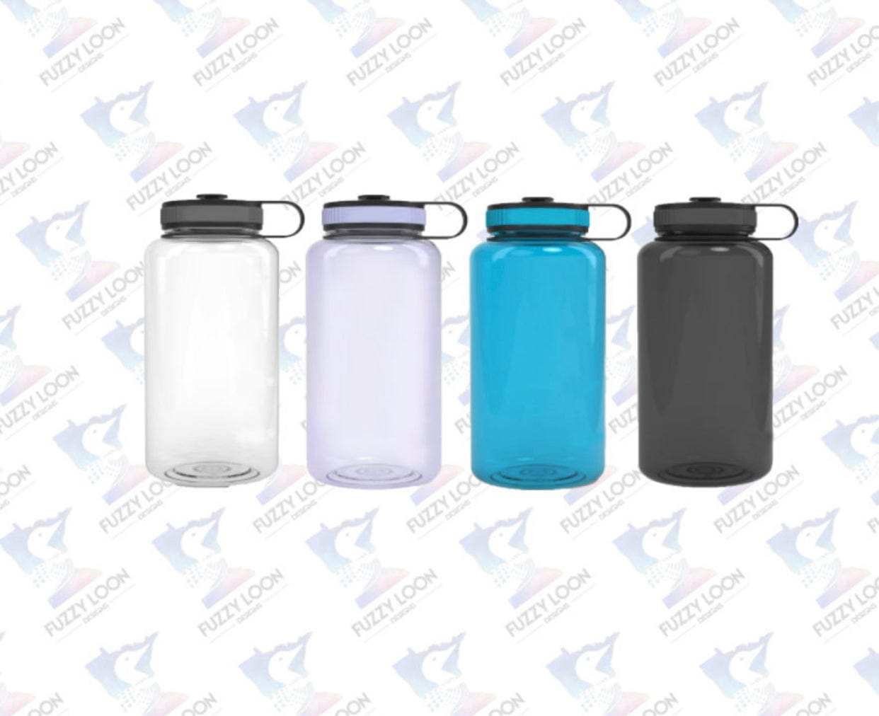 The bottle is a 34oz single wall Tritan™ water/sport bottle. Tritan is a tough, shatter-resistant, 100% BPA free copolyester that can withstand sub-freezing and boiling temperatures. The black plastic twist-on cap is attached to the bottle via a tethered strap. The bottle does not have any raised markings perfect for adding your own personalizations.