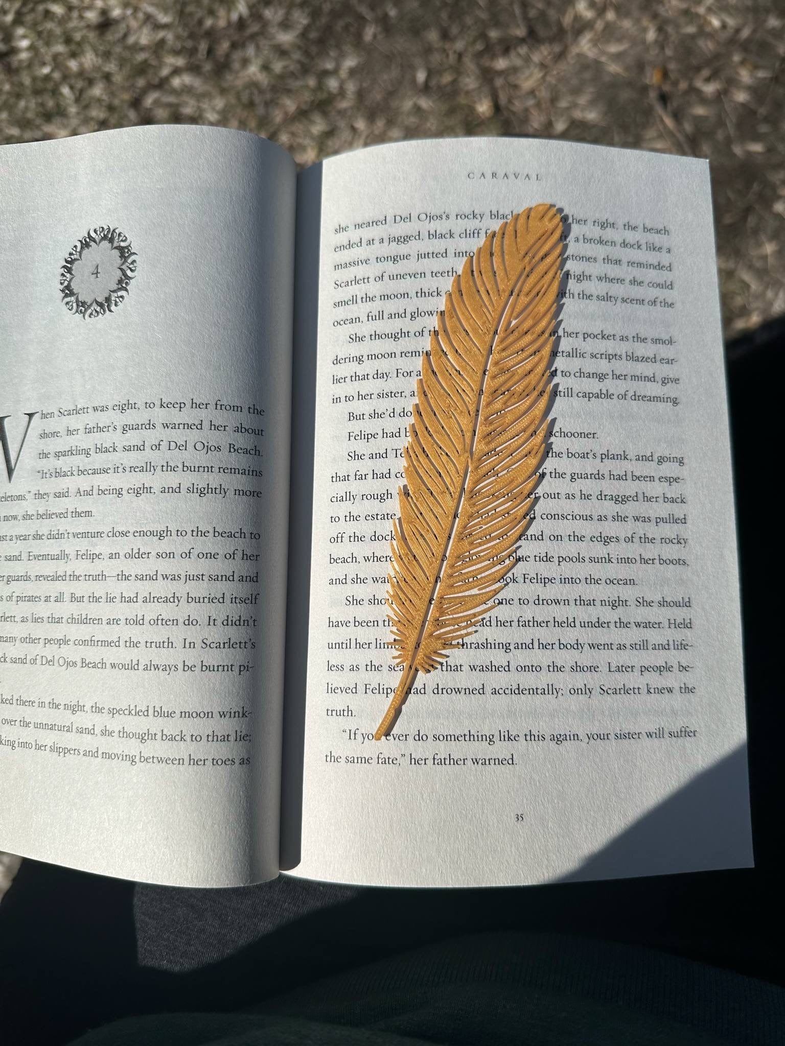 Lightweight, elegant, and beautifully detailed—our gold feather bookmark brings a touch of magic to your reading time.