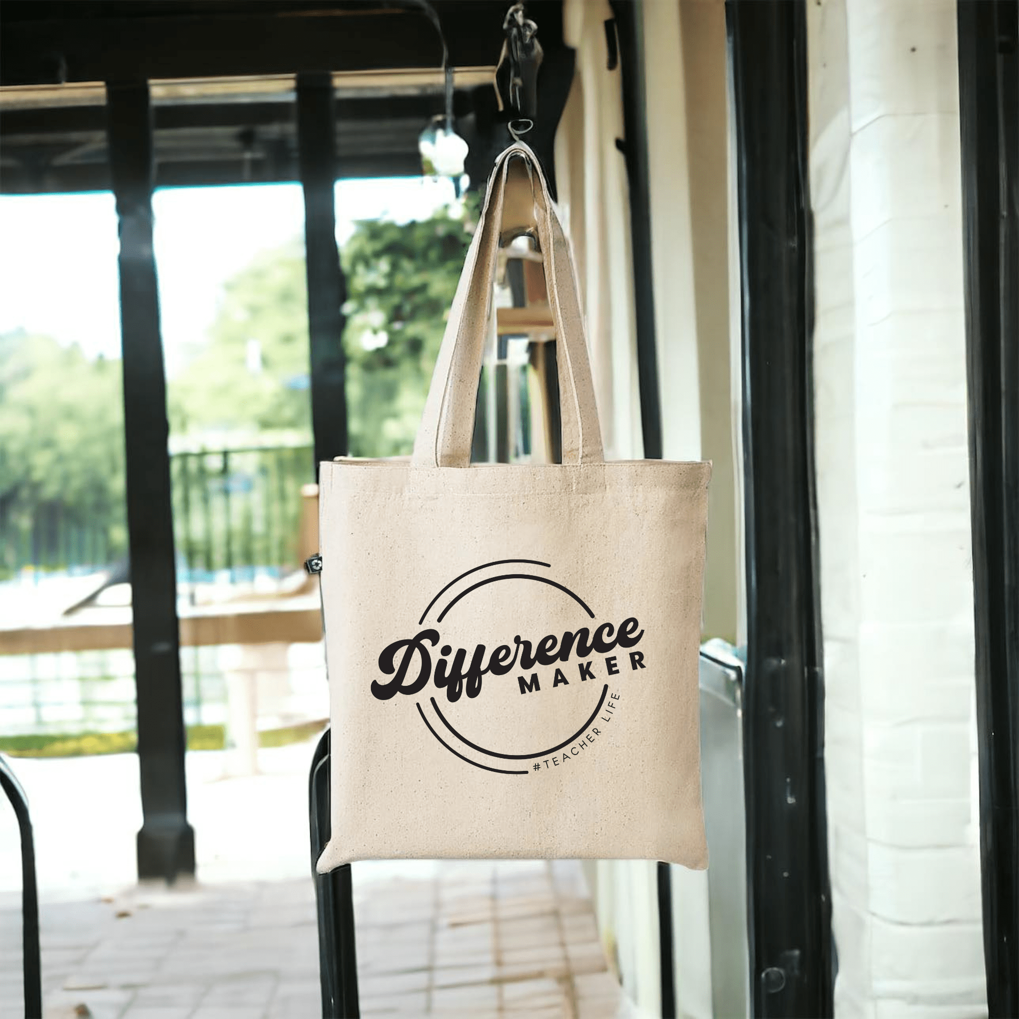 Our NEW canvas totes are made of 10oz recycled canvas material, roughly 15"x16" with a flat bottom. Reinforced at stress points. Because totes are made with recycled material and of fabric texture, color may differ slightly.