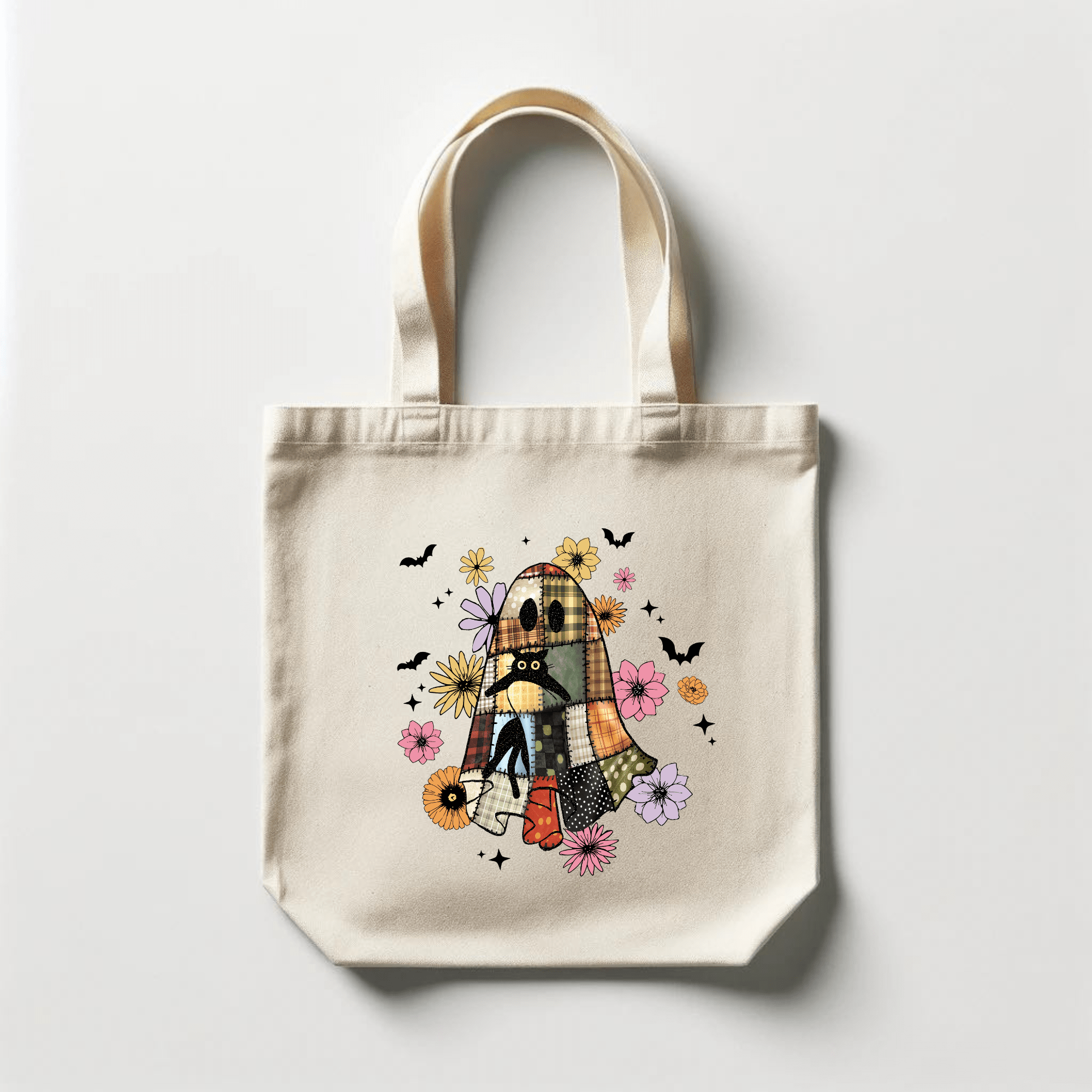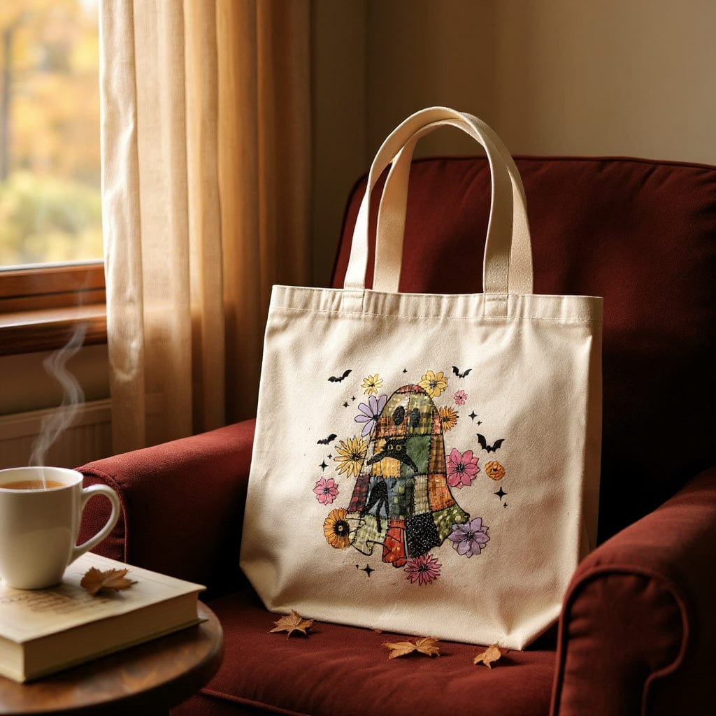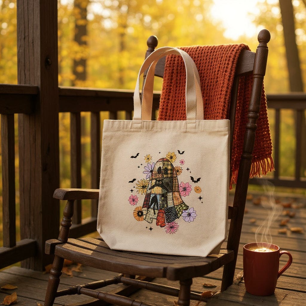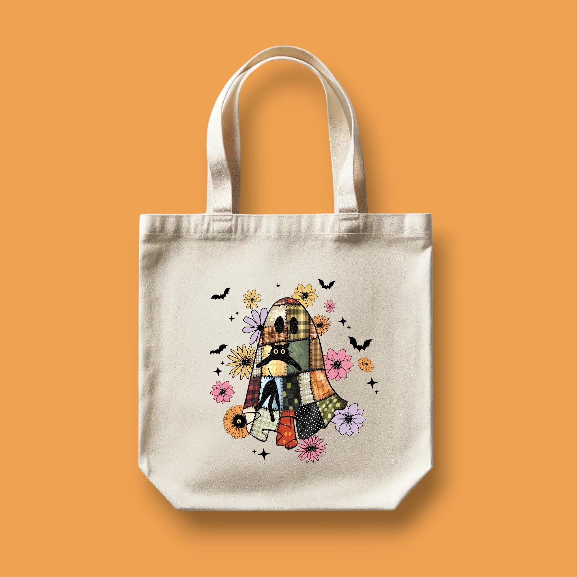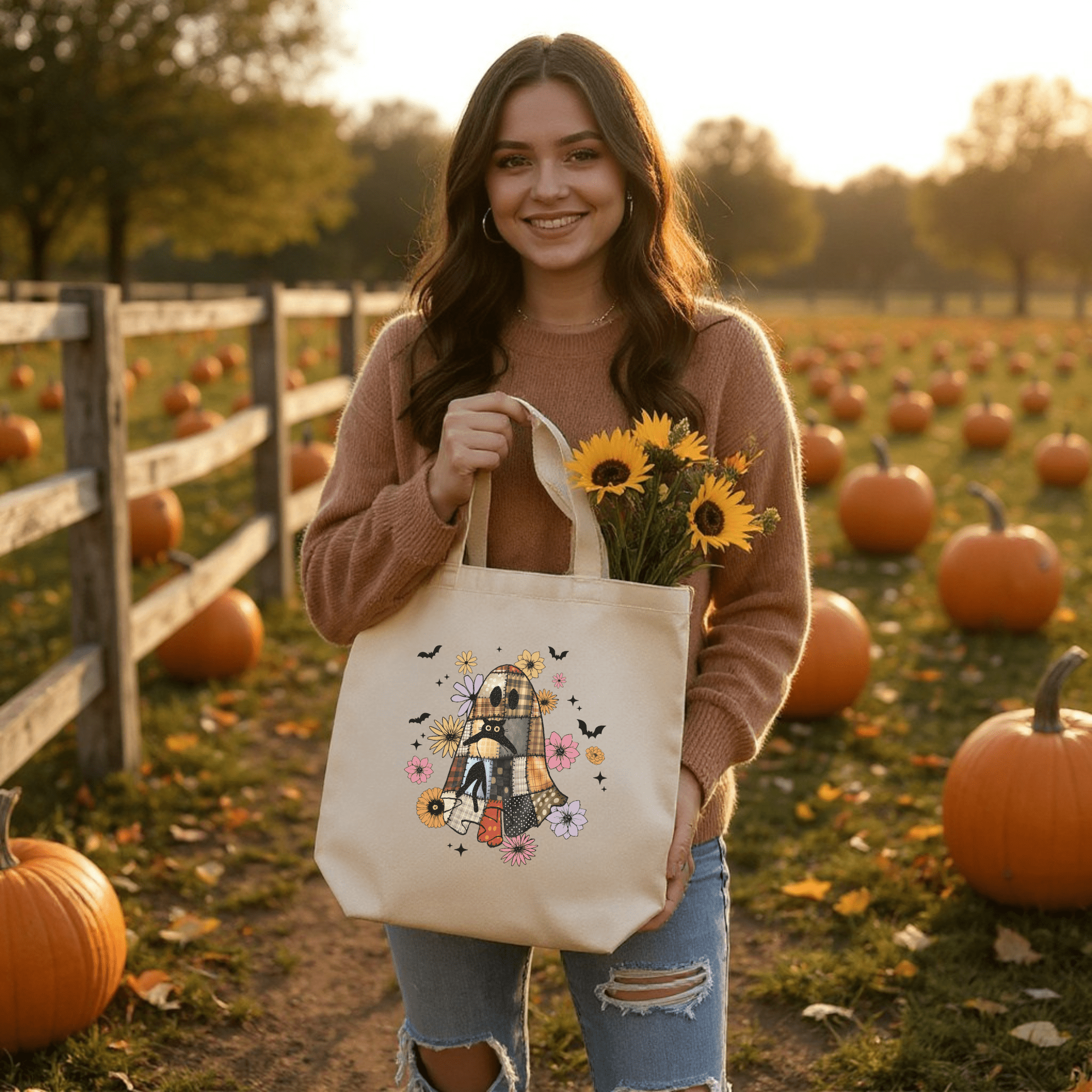 Our Trick or Treat Bags are made of 10oz recycled canvas material, roughly 15"x16" with a flat bottom. Reinforced at stress points. Because totes are made with recycled material and of fabric texture, color may differ slightly.