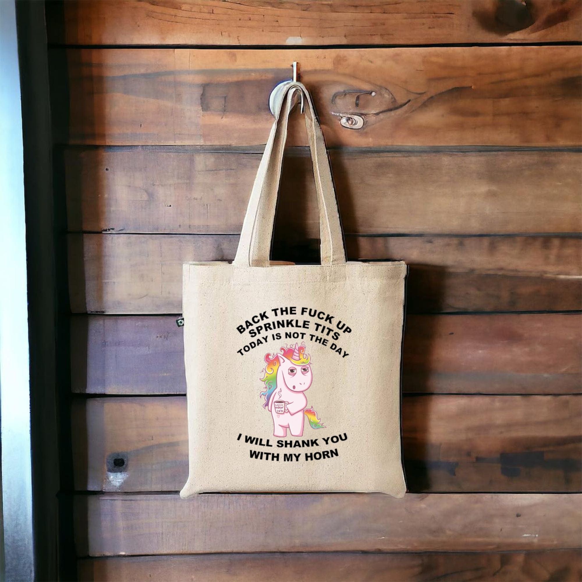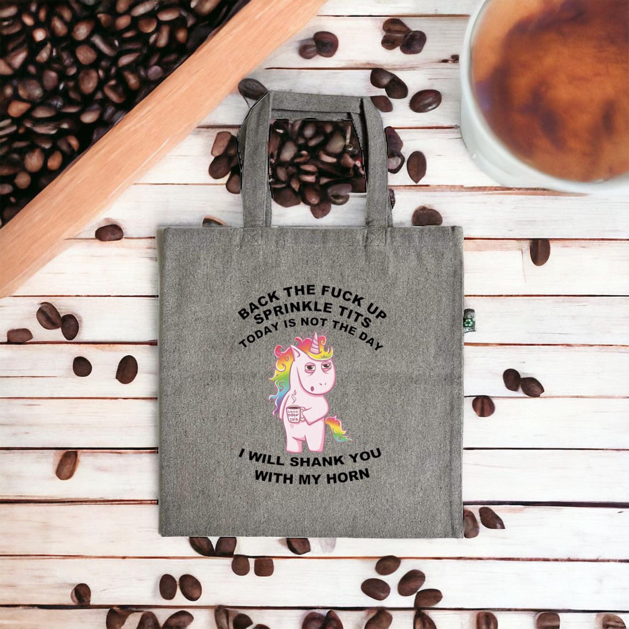 Our NEW canvas totes are made of 10oz recycled canvas material, roughly 15"x16" with a flat bottom. Reinforced at stress points. Because totes are made with recycled material and of fabric texture, color may differ slightly.