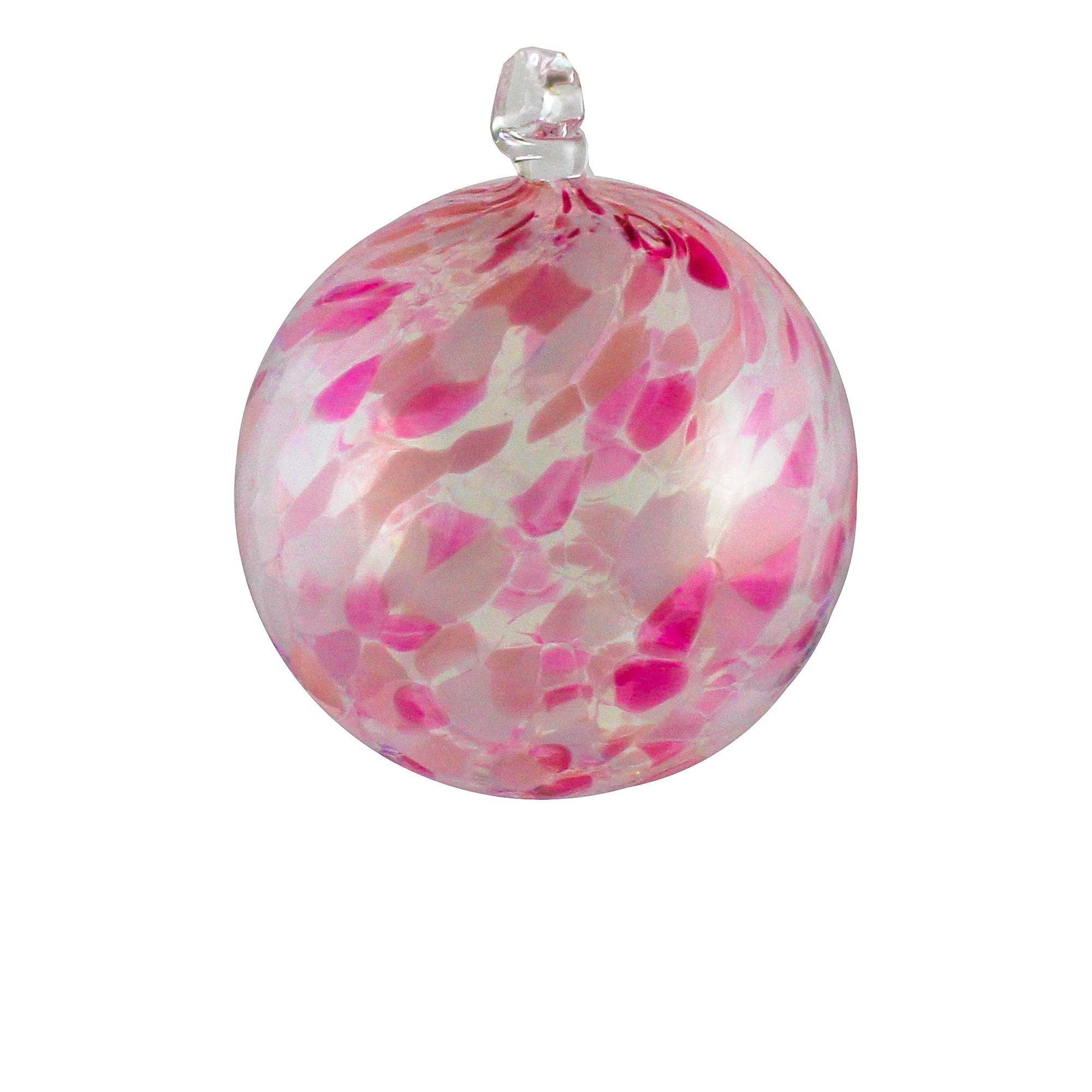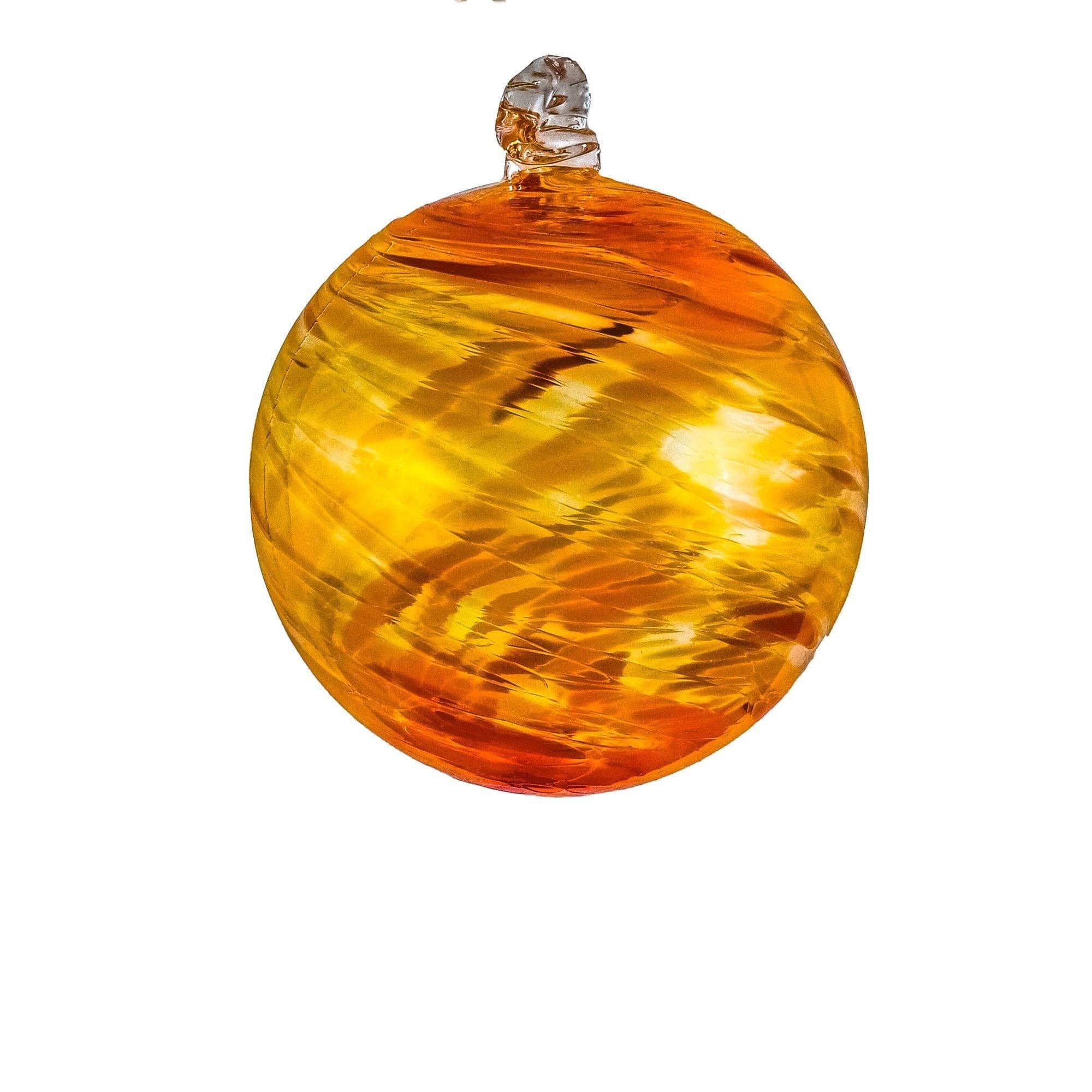 Our beautifully blown glass ornaments, made in our own Hot Shop, can make any holiday or event shine a little brighter. Wonderful to hang on a Holiday/ Christmas tree or in a window throughout the year. Dimensions: Approximately 3" in diameter. PLEASE NOTE that while we do our best to create a cohesive series, not every piece will be identical to the image shown, as it is all handmade and subject to variations due to color placement and firing.