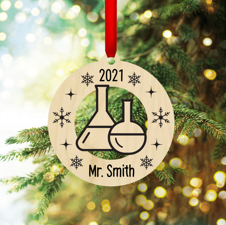 Personalized Wood Teacher Ornament | Pencil & Ruler