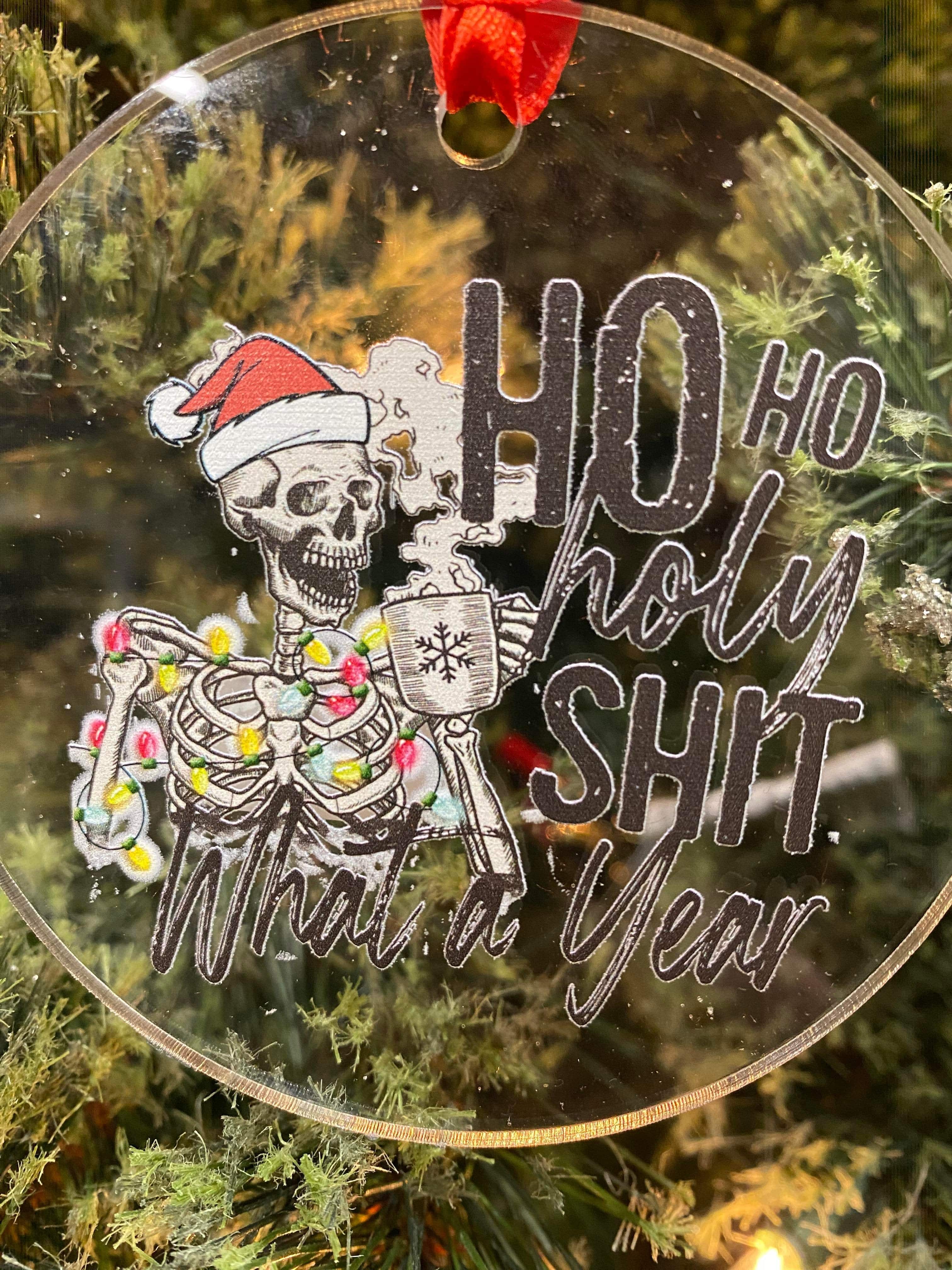 Ho Ho Holy Shit What a Year Acrylic Round Ornament
