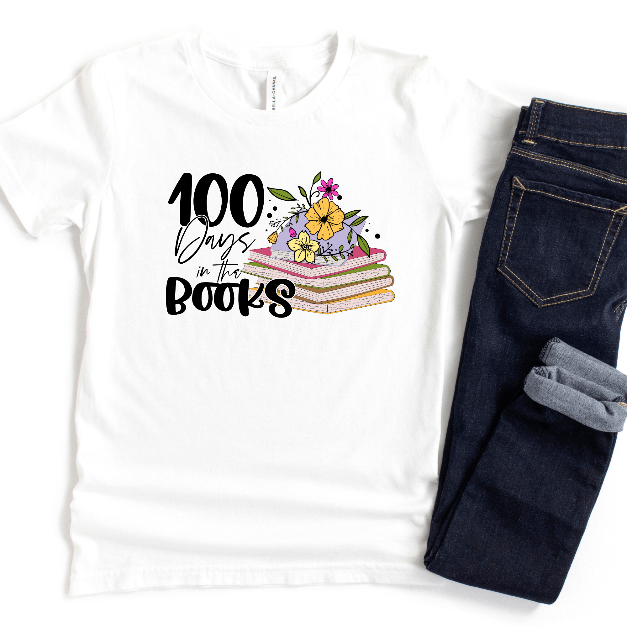 Happy 100 Days of School! This floral books design is perfect for any avid reader.