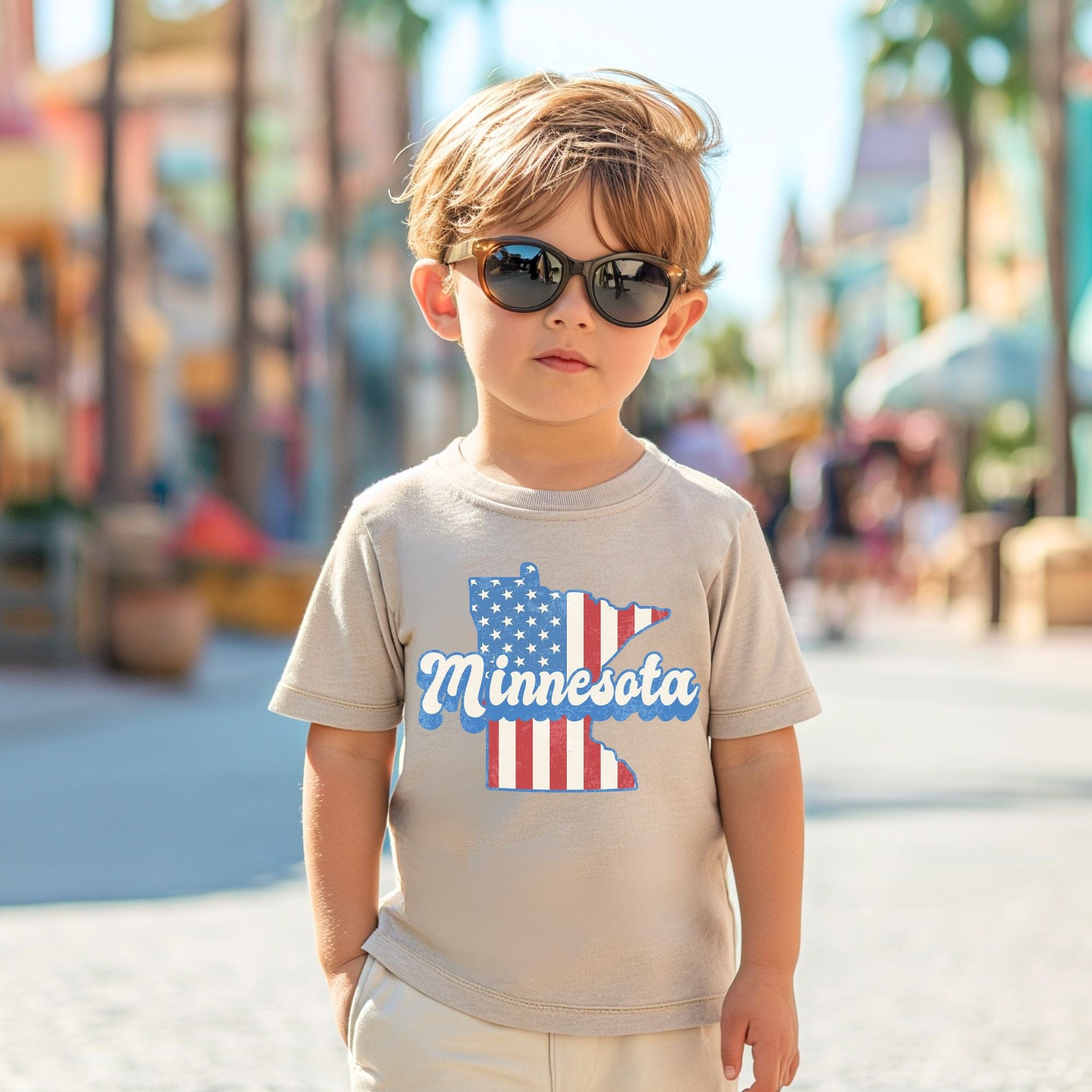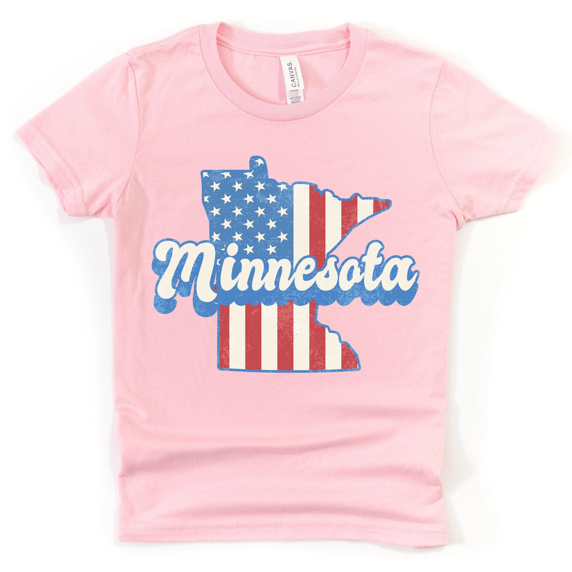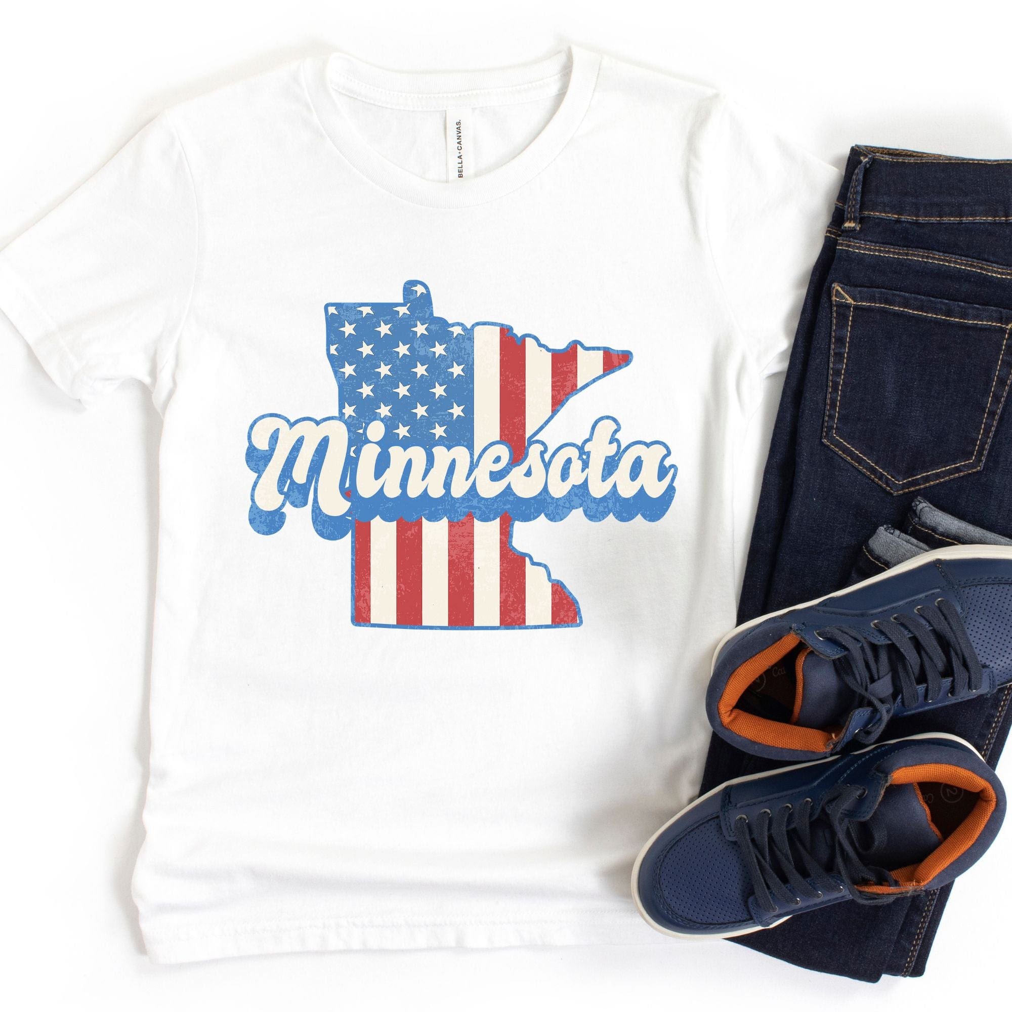 Show off your love for both Minnesota and America with our patriotic American Flag Minnesota Kids T-Shirt. Perfect for any little Minnesotan with a sense of pride and patriotism. Stand out from the crowd with this fun and unique t-shirt.