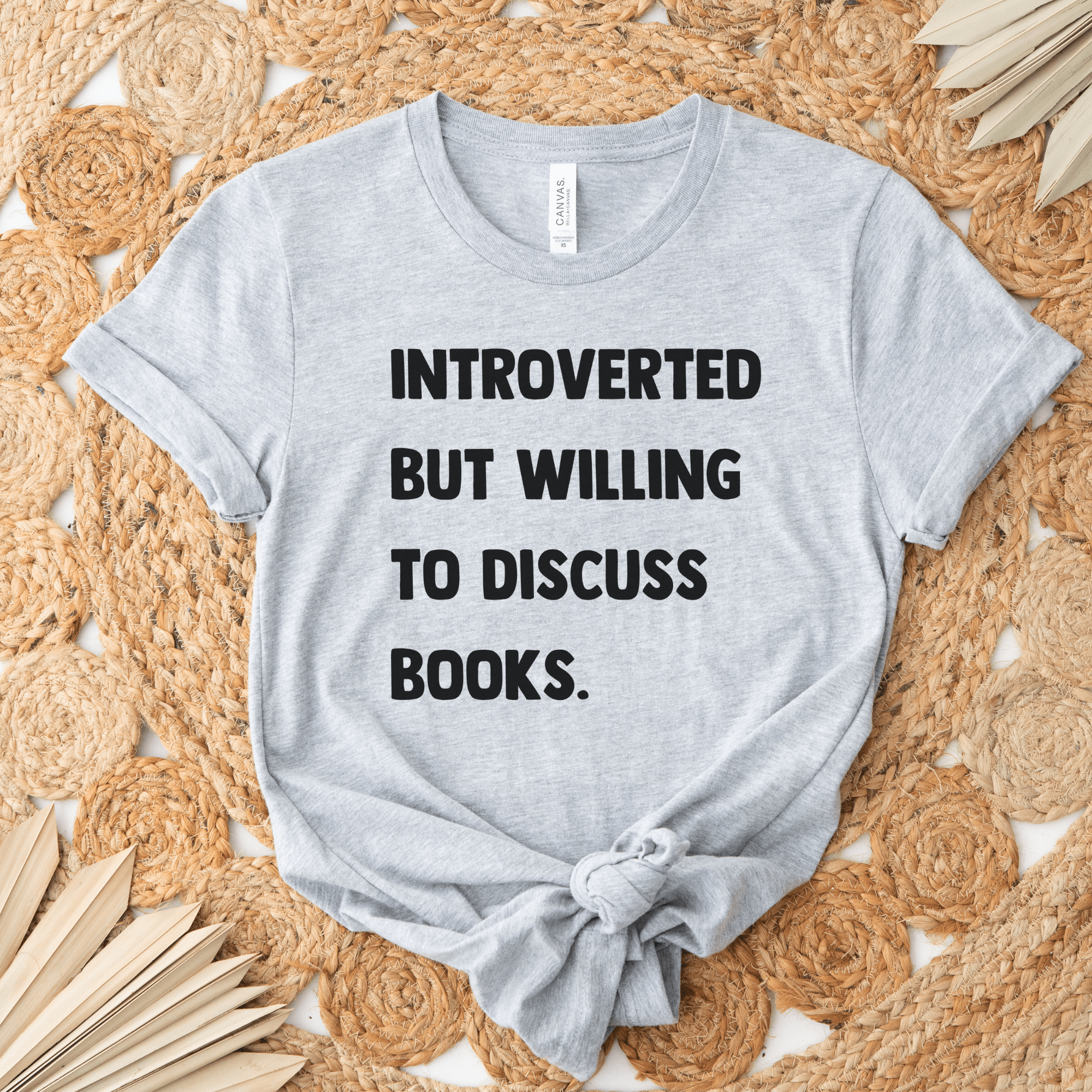 Show off your love for books with our Introverted But Willing to Discuss Books T-Shirt. Stylish and expressive, this shirt lets you embrace your introversion while still letting others know you're always up for a good book chat. Perfect for book lovers who appreciate a good play on words.