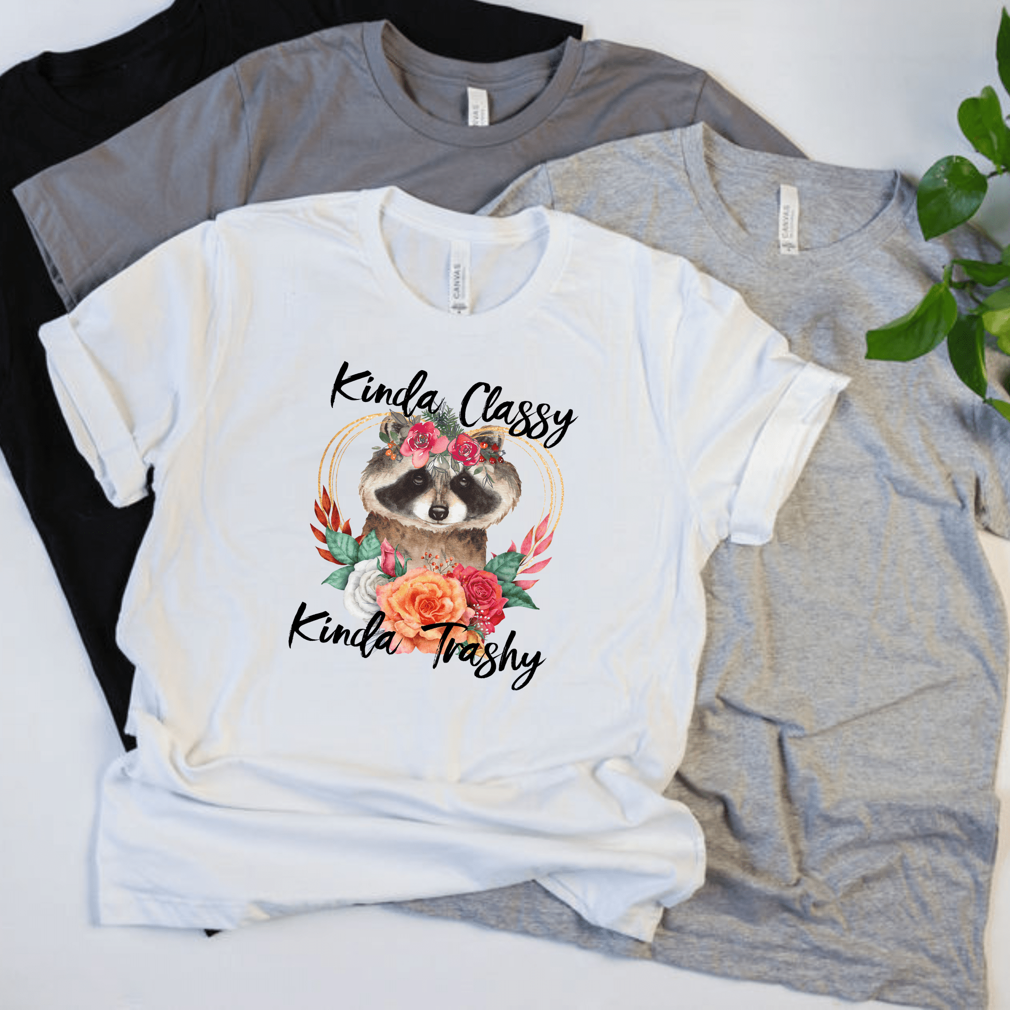 If your style is kinda classy and kinda trashy, then this racoon t-shirt is for you! Show off your unique sense of humor with this fun and stylish graphic tee - perfect for any casual occasion! Trust us, you won't find a more accurate description of yourself!