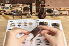 Tools Included: Glue, tweezers, battery box, LED lights, wires, dust cover, and paper instruction manual.
