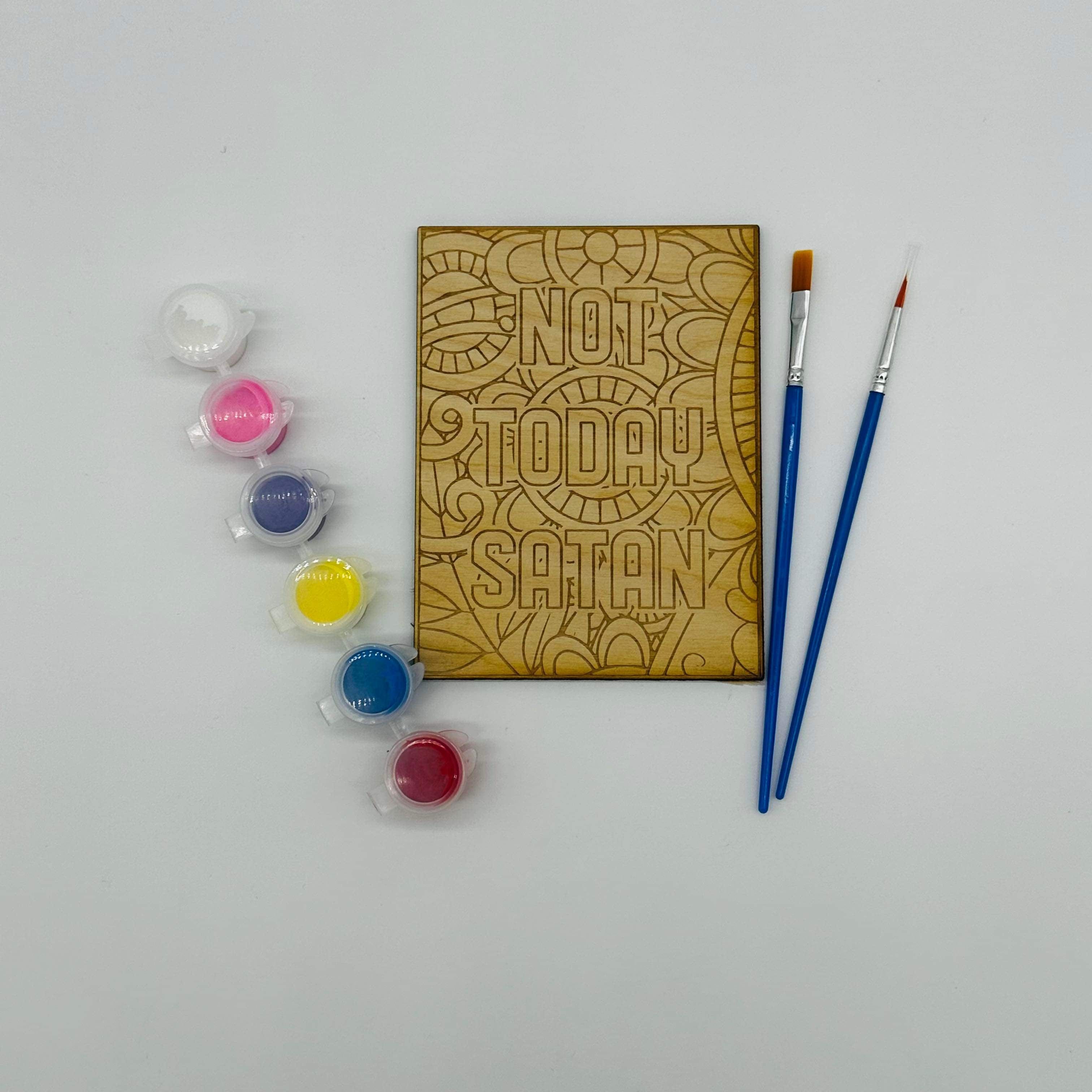 Unleash your inner artist with the Not Today Satan Paint Kit. Let the calming effects of painting melt away your stress and leave you feeling refreshed. Take a break from the chaos and create something beautiful with this uniquely quirky paint kit. Don't let Satan get to you, grab a paintbrush instead!