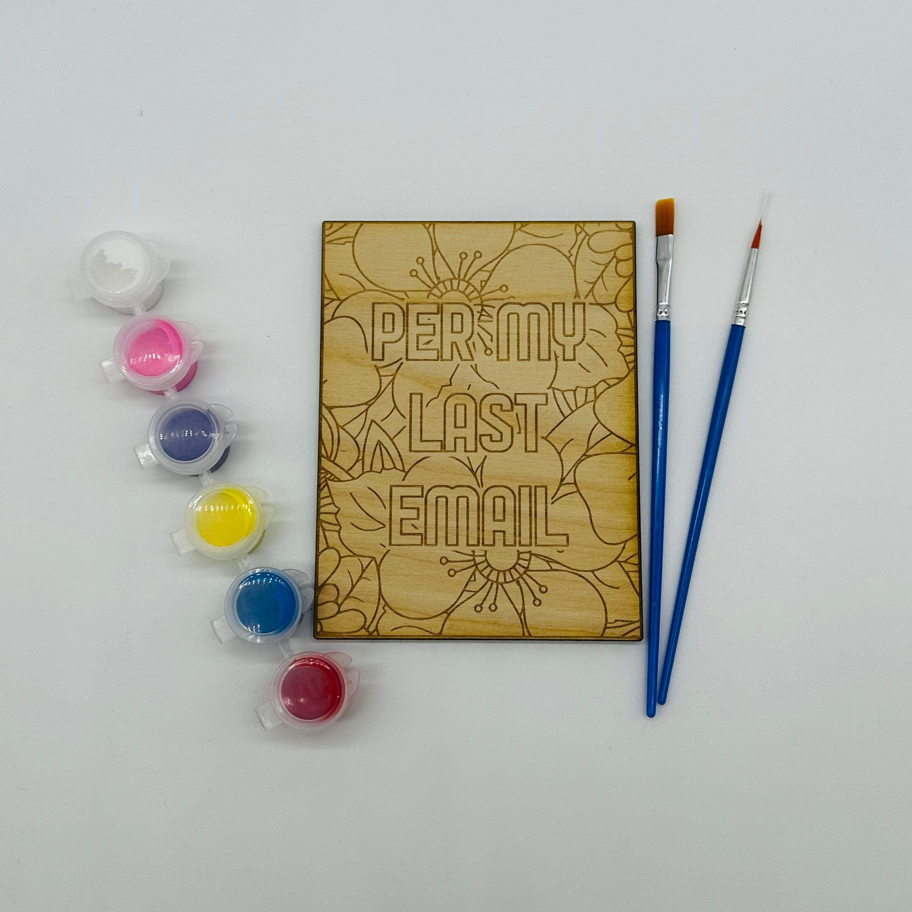 Add a bit of humor to your office space with our Per My Last Email Paint Kit. This kit includes everything you need to create fun and quirky artwork while also showcasing your love for office humor. Let your creativity flow and add a touch of personality to your workspace.