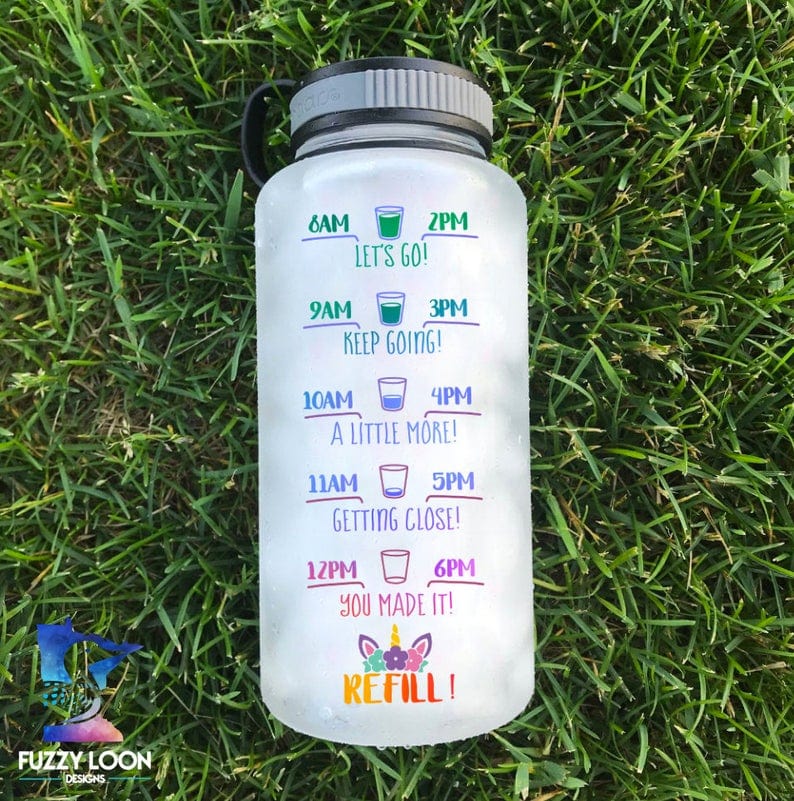 Need to drink more water!? The water table on the back helps you drink your water all day long. This is the perfect water bottle for anyone looking to drink more water each day.