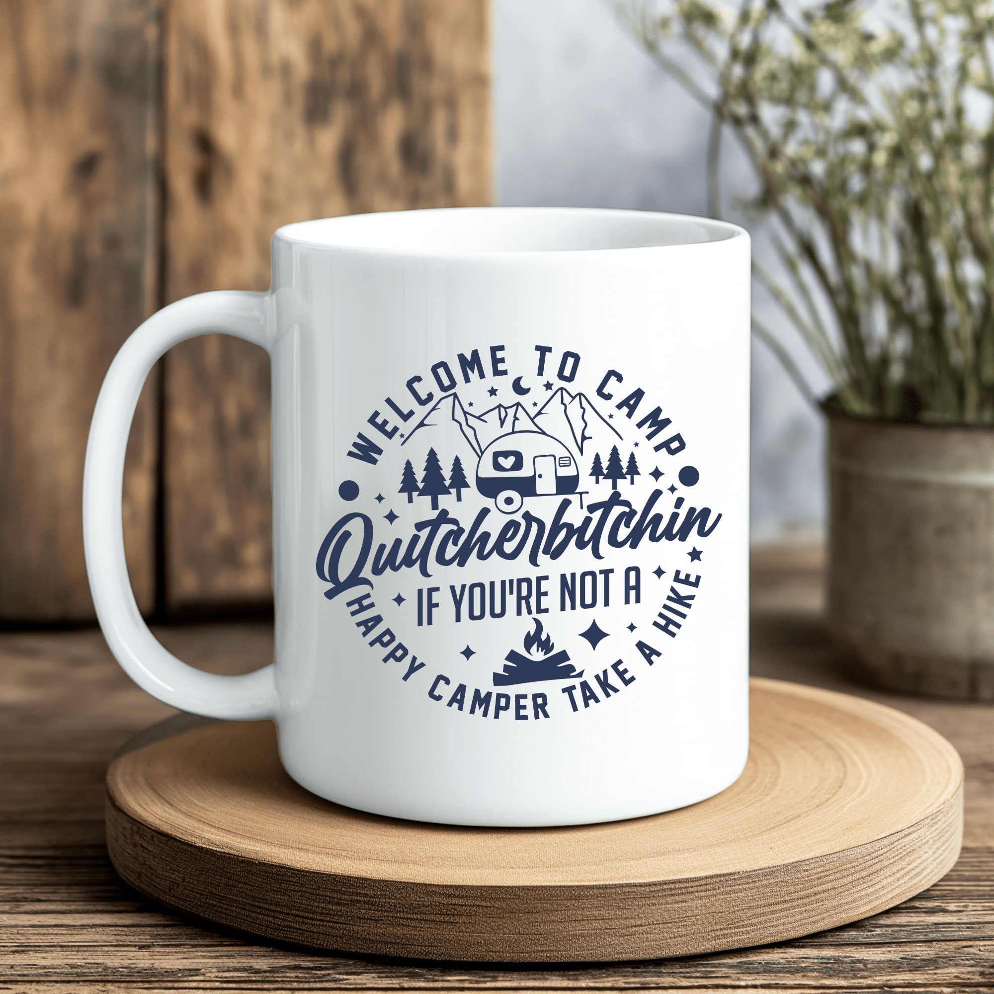 Quit your complaining and enjoy your morning cuppa with the Camp Quitcherbitchin Mug. Perfect for campers with a sense of humor, this mug will make you laugh while you sip. Start your day off on a playful note with this funny mug. (Campfire and s'mores not included).