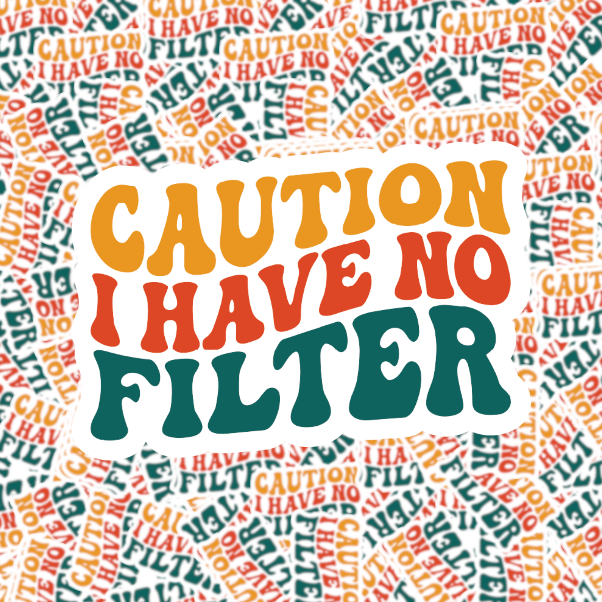 Show off your bold personality with the Caution I Have No Filter Sticker. Featuring a fun, eye-catching font, this playful decal is perfect for adding a touch of humor and honesty to your laptop, water bottle, or notebook. Let everyone know you speak your mind—no filter needed!