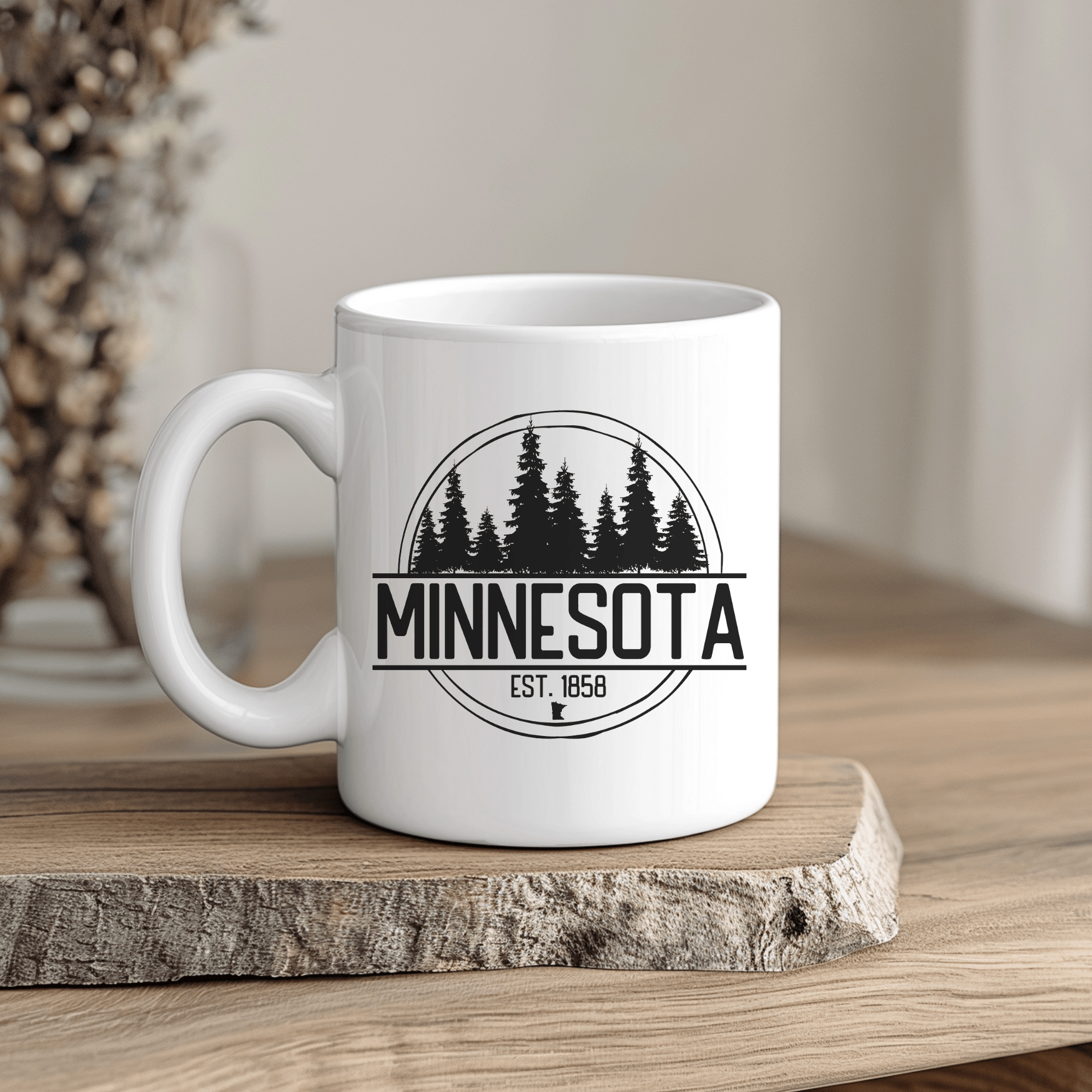 Show off your love for Minnesota with our Circle Pines Mug! This mug features a circle design with Minnesota Pines and the word Minnesota, making it the perfect gift for any Minnesotan. Enjoy your morning coffee or tea with a touch of hometown pride.