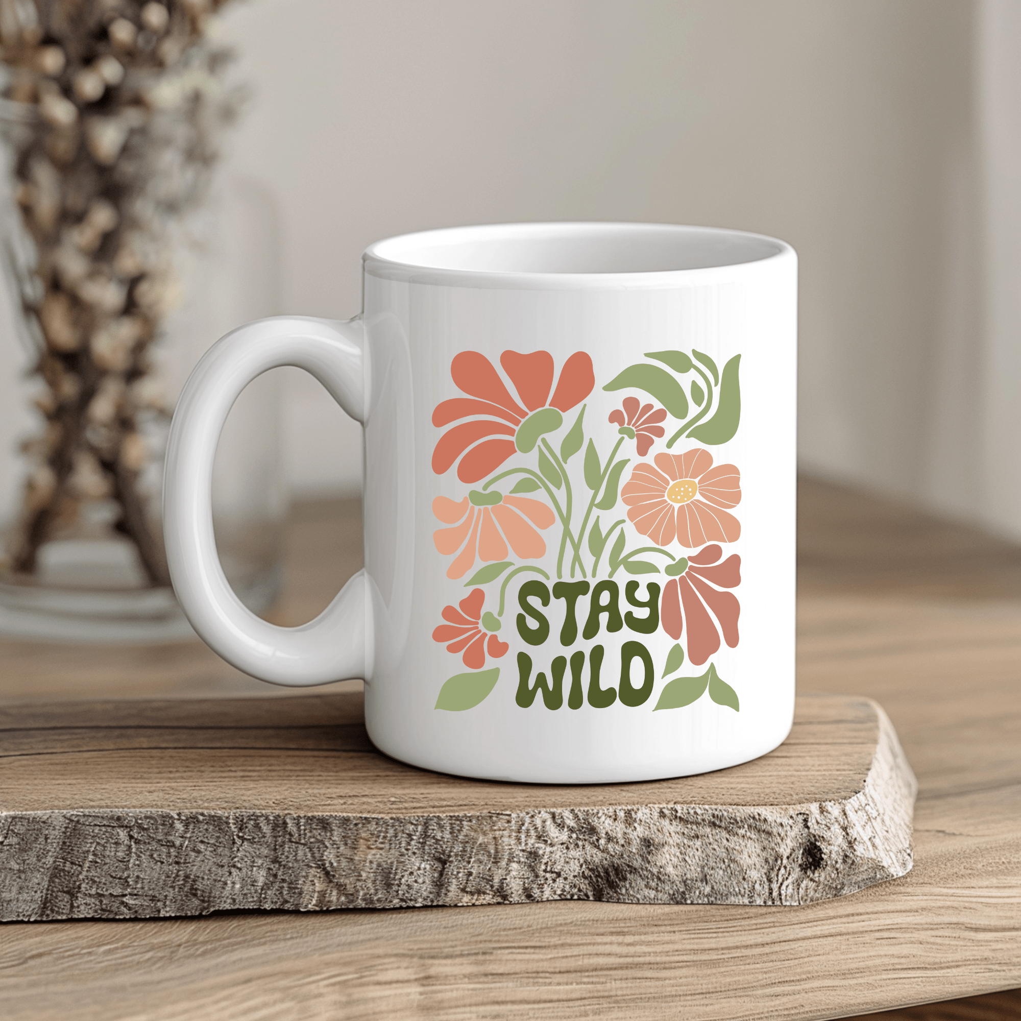 This Stay Wild Mug is perfect for those who love the outdoors and embrace a free-spirited lifestyle. With a retro floral design, it's a stylish and unique addition to any mug collection. Show off your untamed side and enjoy your favorite beverage in this one-of-a-kind mug.