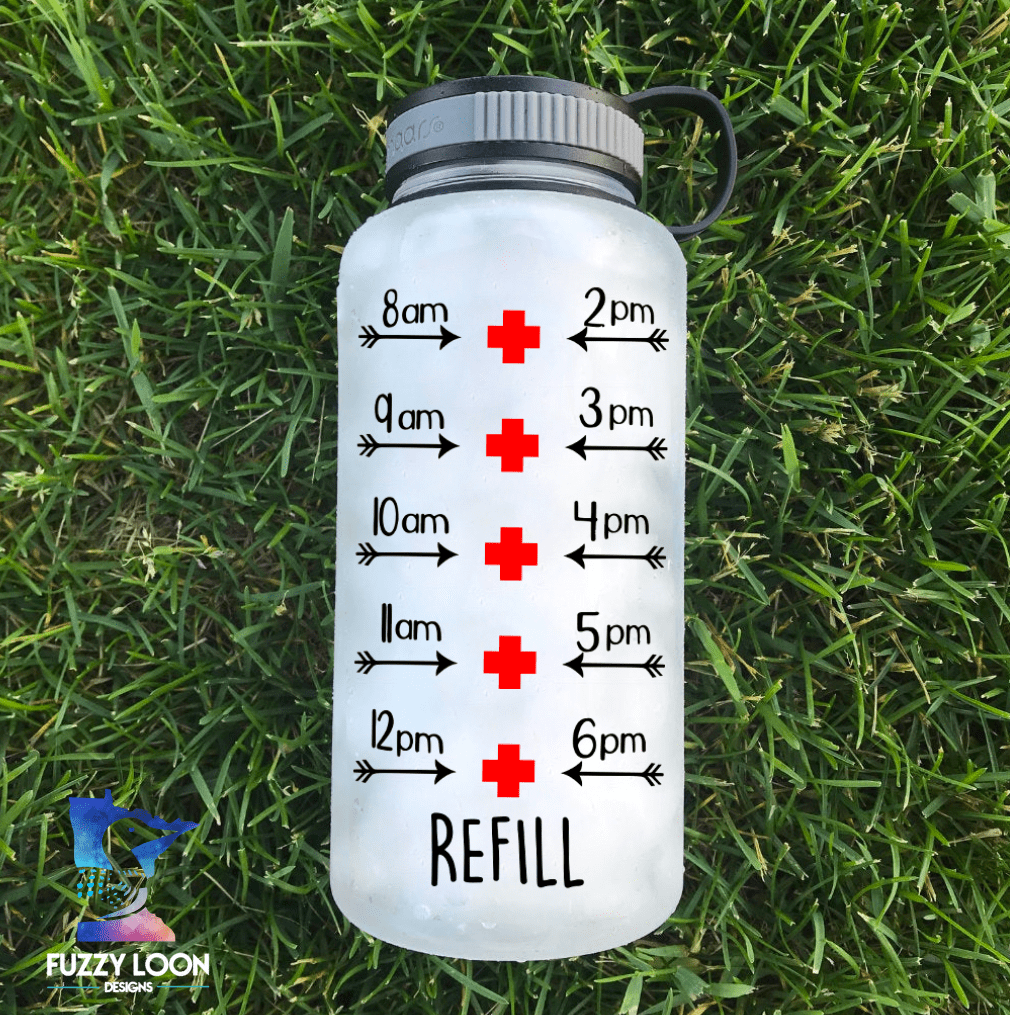 Need to drink more water!? The water table on the back starts at 8am and helps you drink your water all day long. This is the perfect water bottle for anyone looking to drink more water each day.
