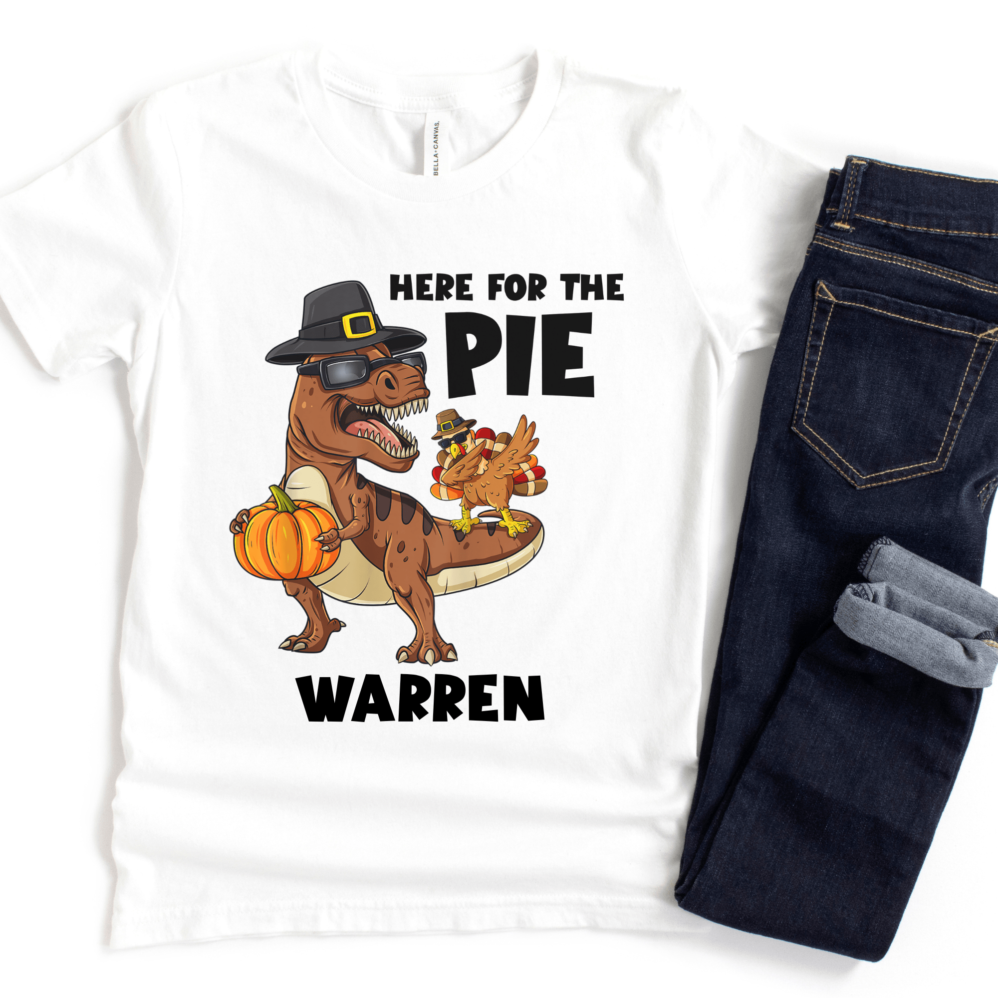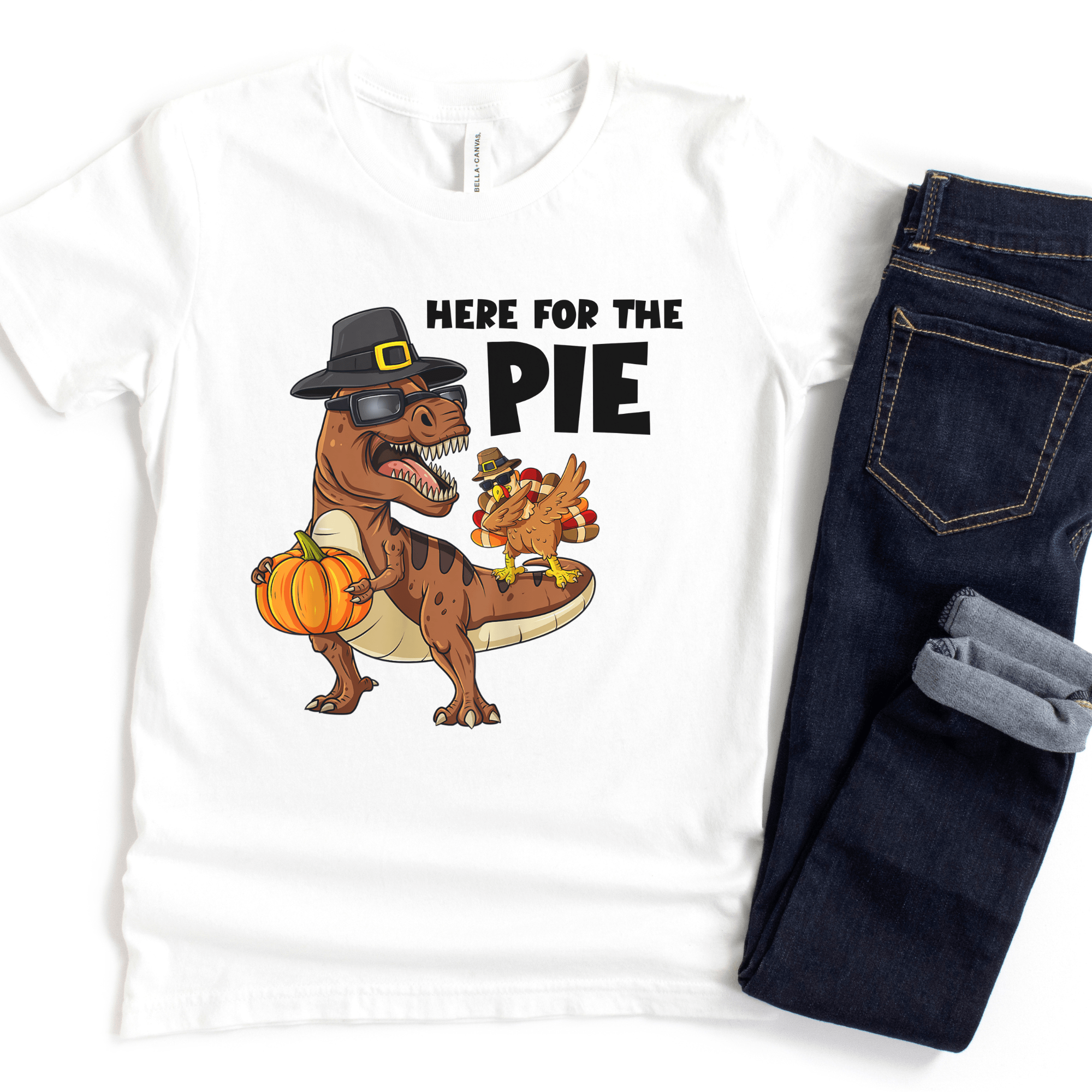Here for the Pie Dabbing Dinosaur Kids T-Shirt