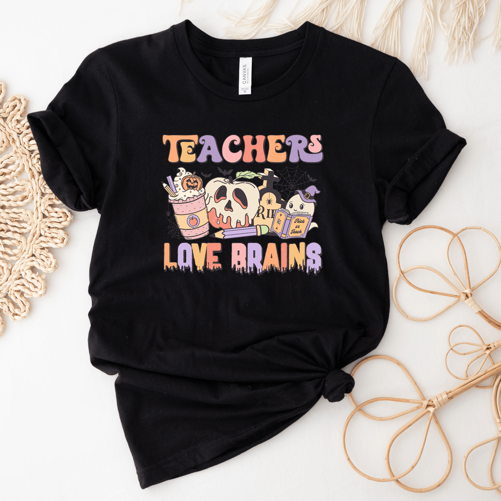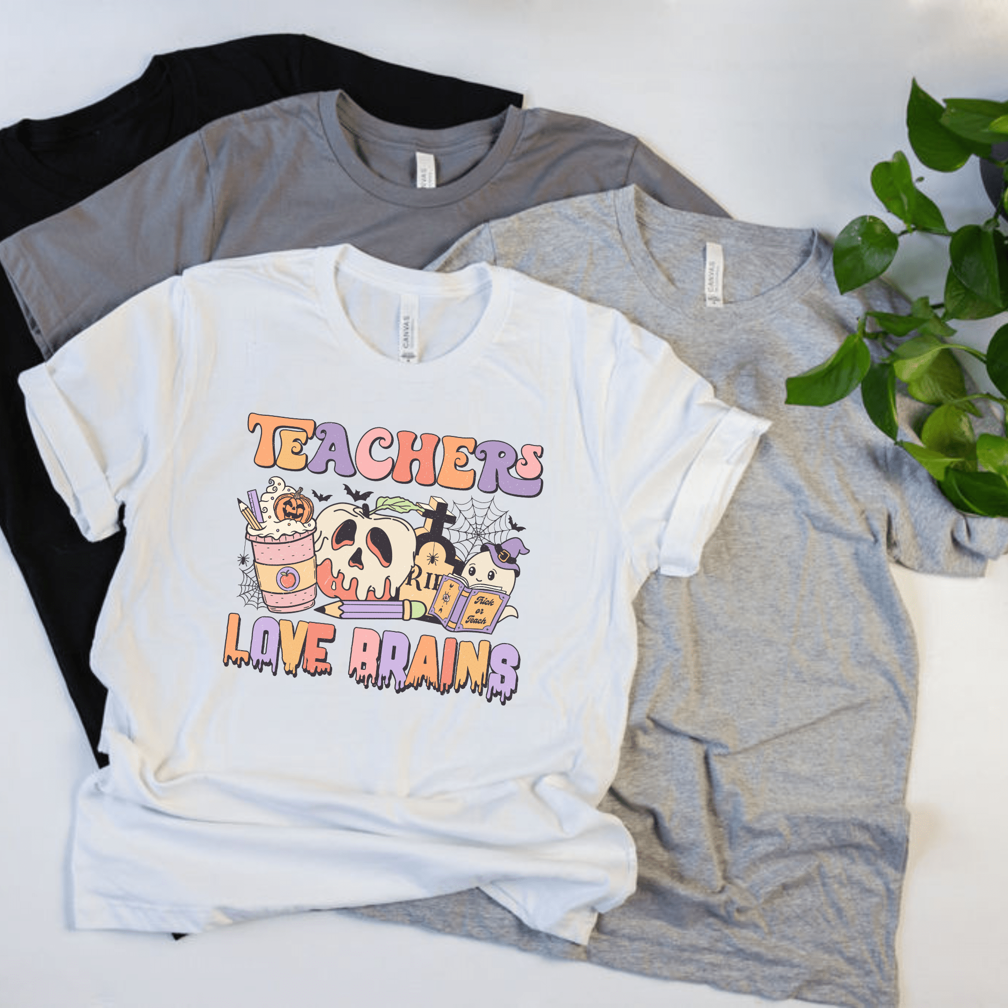 Are you ready for a spooky classroom costume upgrade? Add a nerdy twist this Halloween with the Teachers Like Brains Adult T-Shirt! Featuring a retro design that makes sure everyone knows teachers like brains, it's sure to be an A+ addition to your classroom costume!