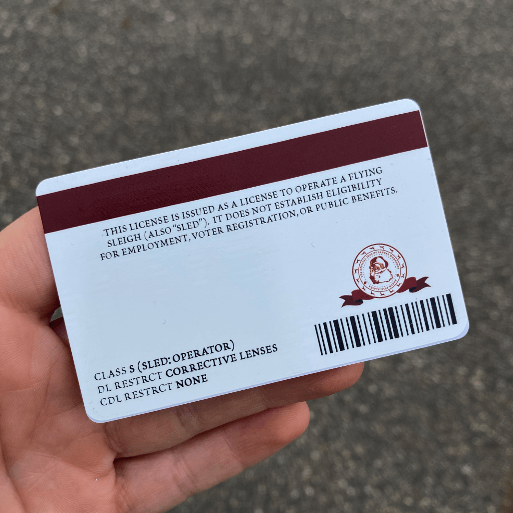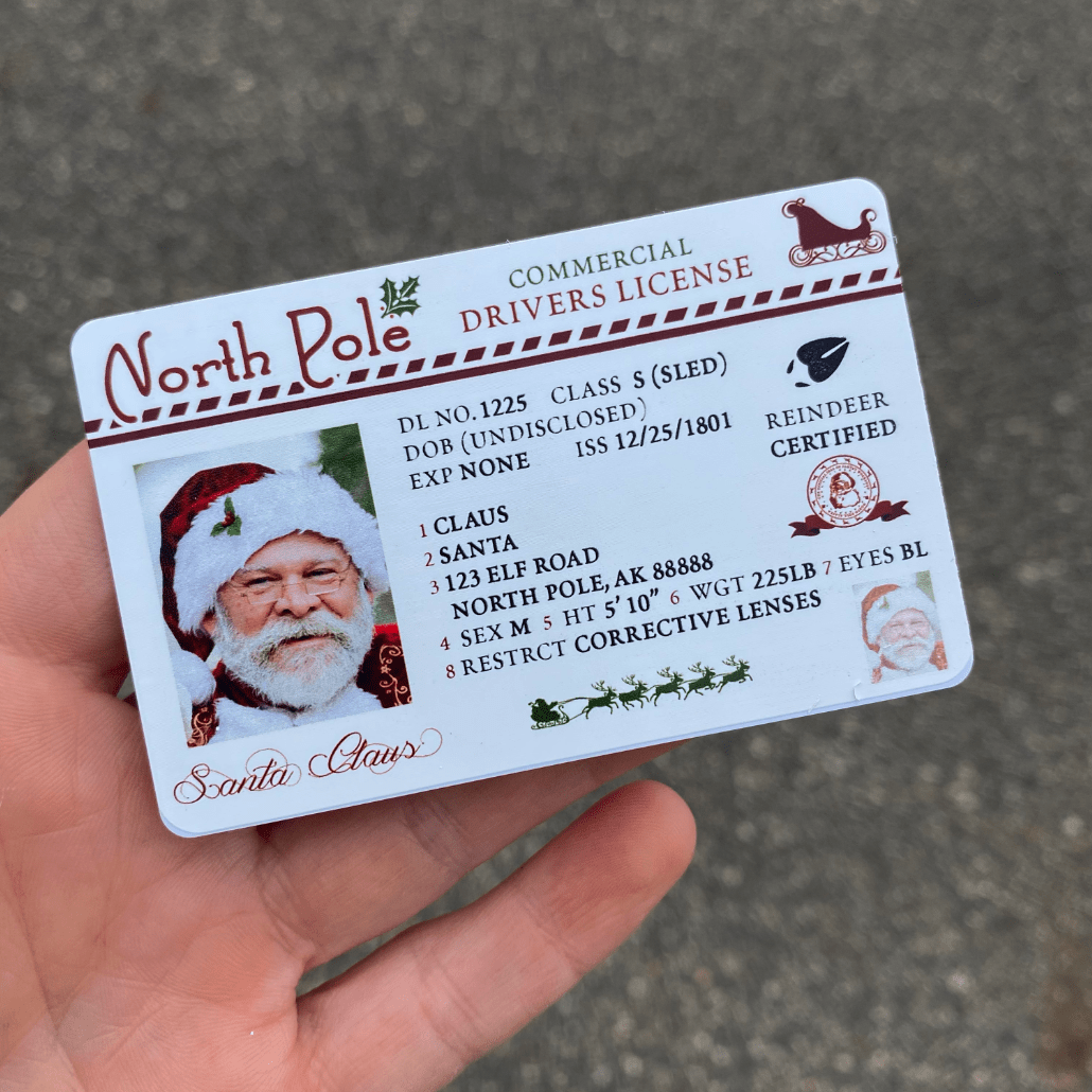 Oh No! Santa must have dropped his license! What a cute and fun gift for anyone. Carry it around and show people or leave it for your littles to find. This card is directly printed on PVC (plastic) so it has the weight and feel of a real card. The print has texture and depth to help convince those extra curious kids.