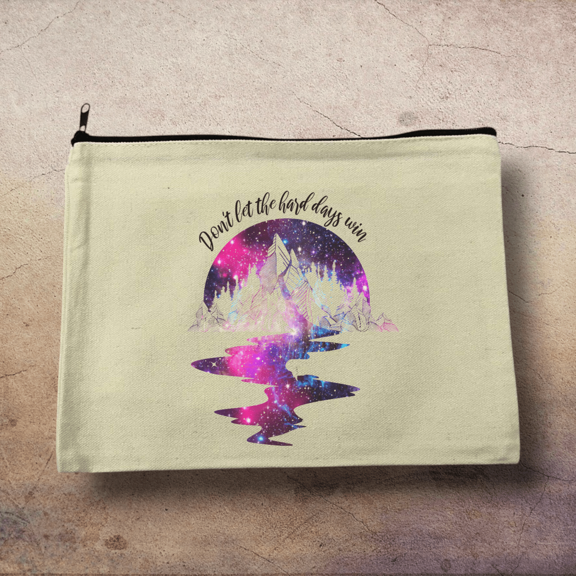 Carry strength and encouragement wherever you go with this "Don't Let the Hard Days Win" canvas pouch. Designed for Acotar fans, its durable zipper and spacious interior keep your essentials secure while reminding you to stay resilient through tough times. Perfect for daily use, this pouch blends practicality with a message of hope and perseverance.