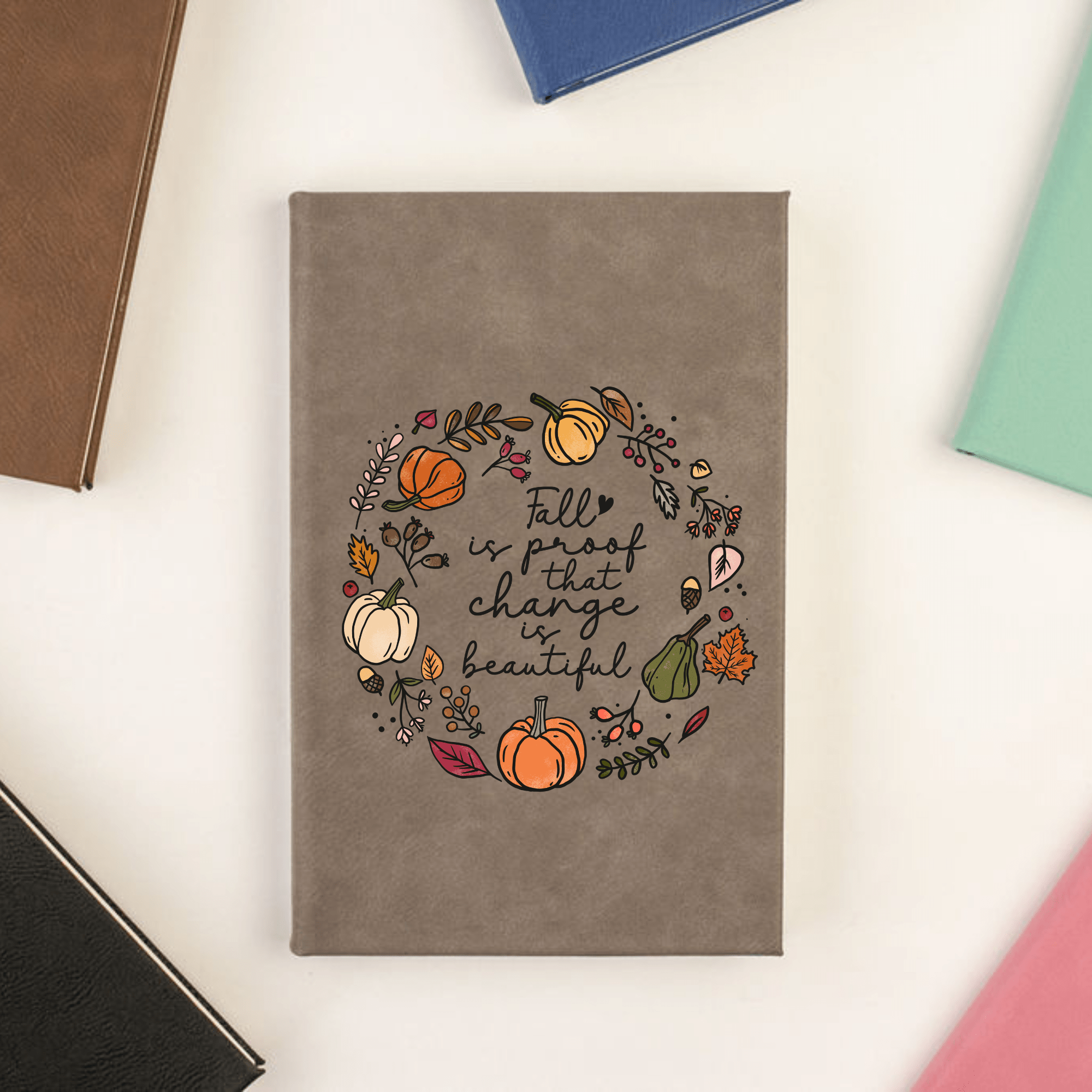 This beautiful leatherette journal printed with the design, Fall is proof that change is beautiful.