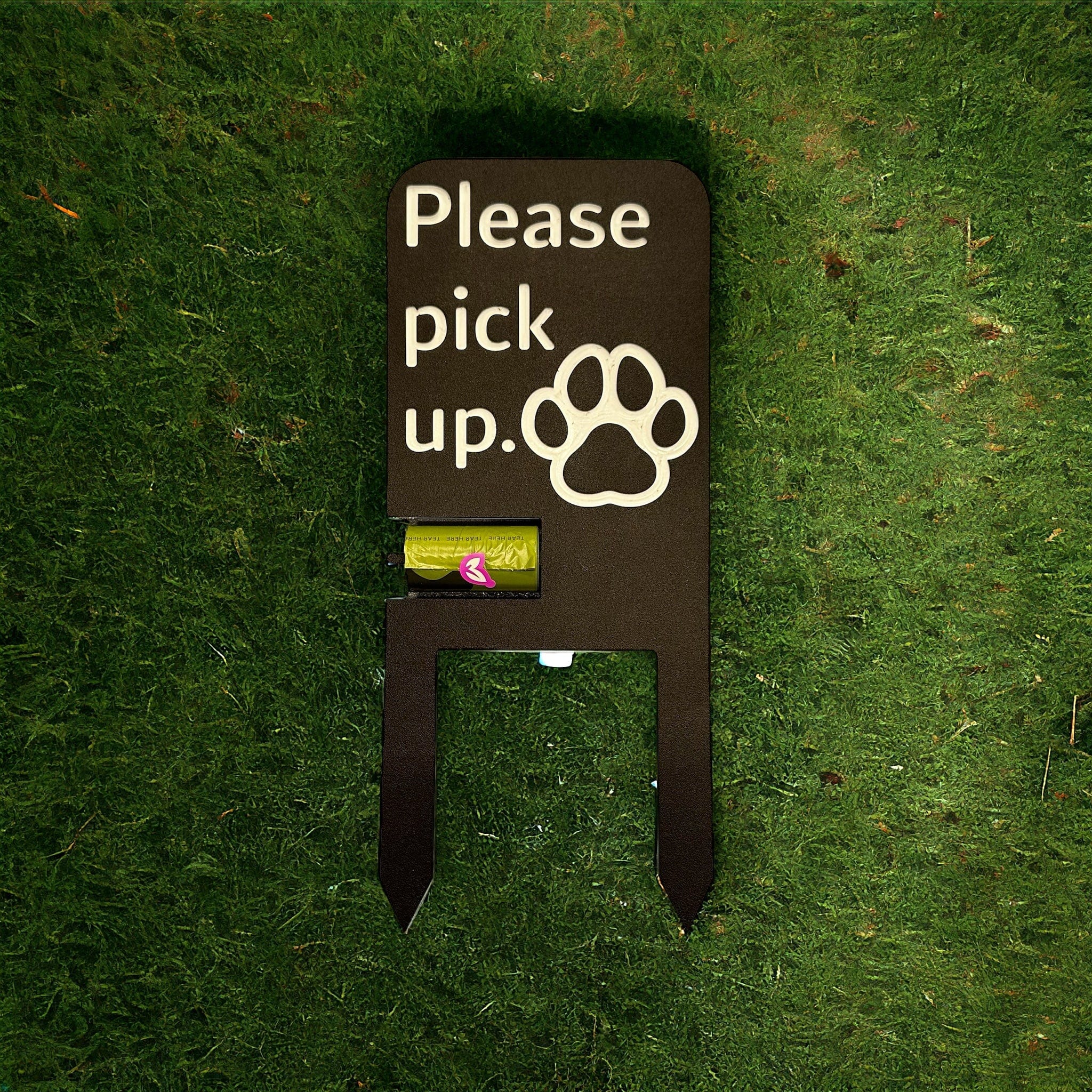 Let this sign do the dirty work for you. With a playful design and conveniently placed doggie dodo bags, subtly hint to others to clean up after their furry friend.