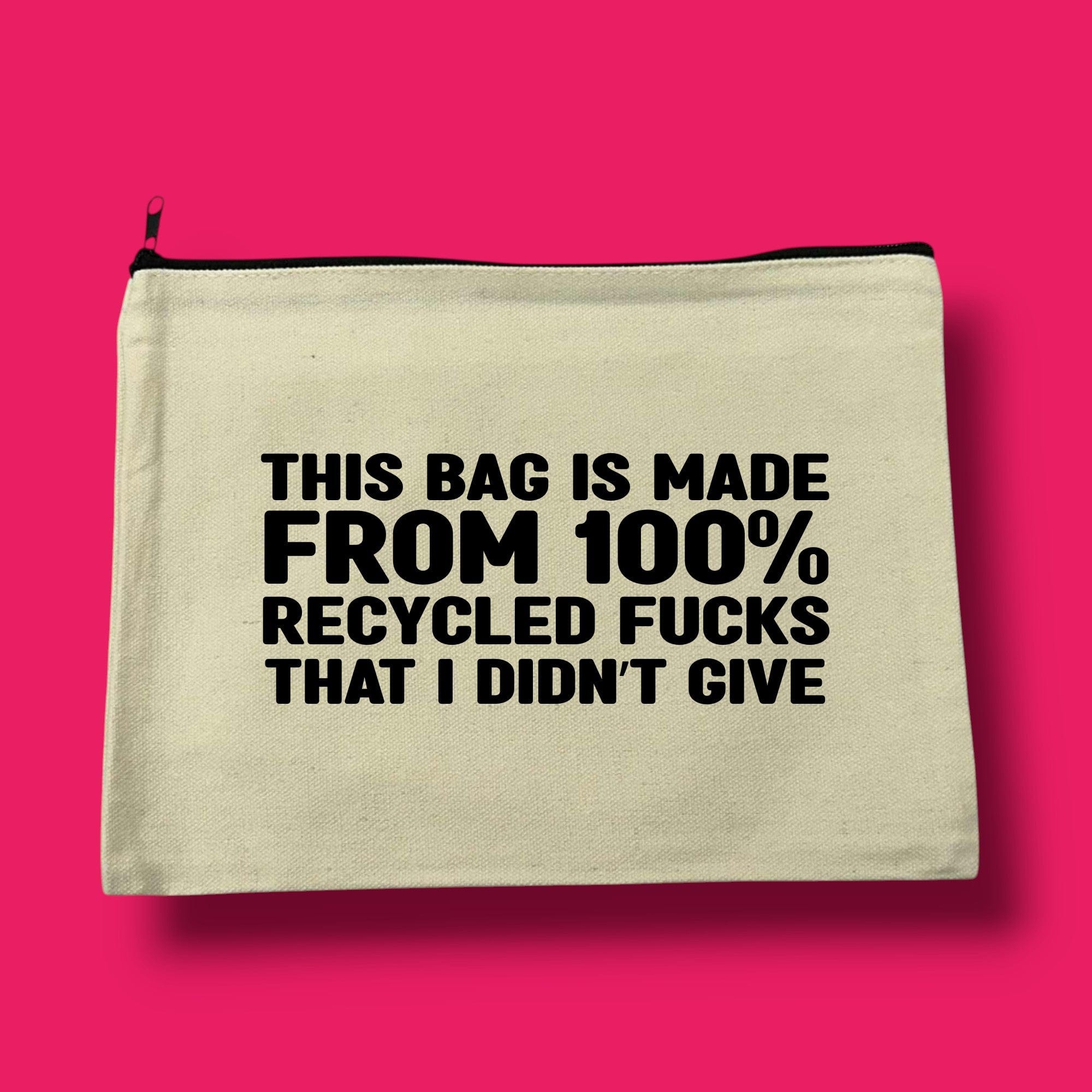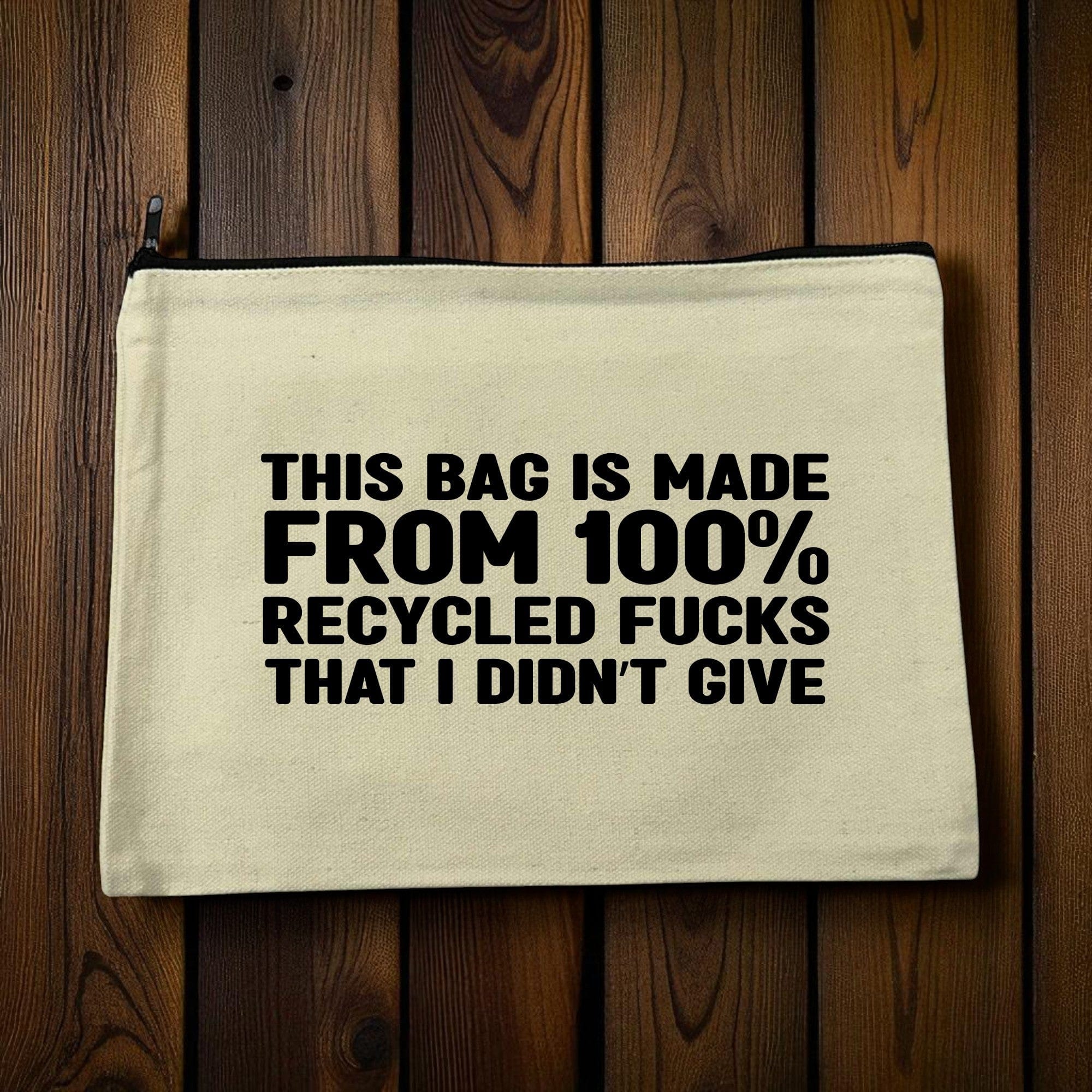 This Bag is Made From 100% Recycled Fucks That I Didn't Give | Canvas Pouch with Zipper