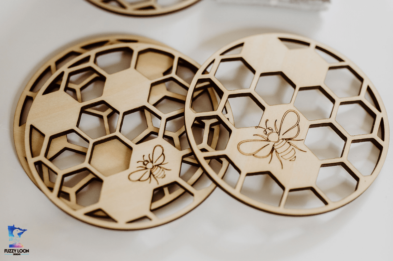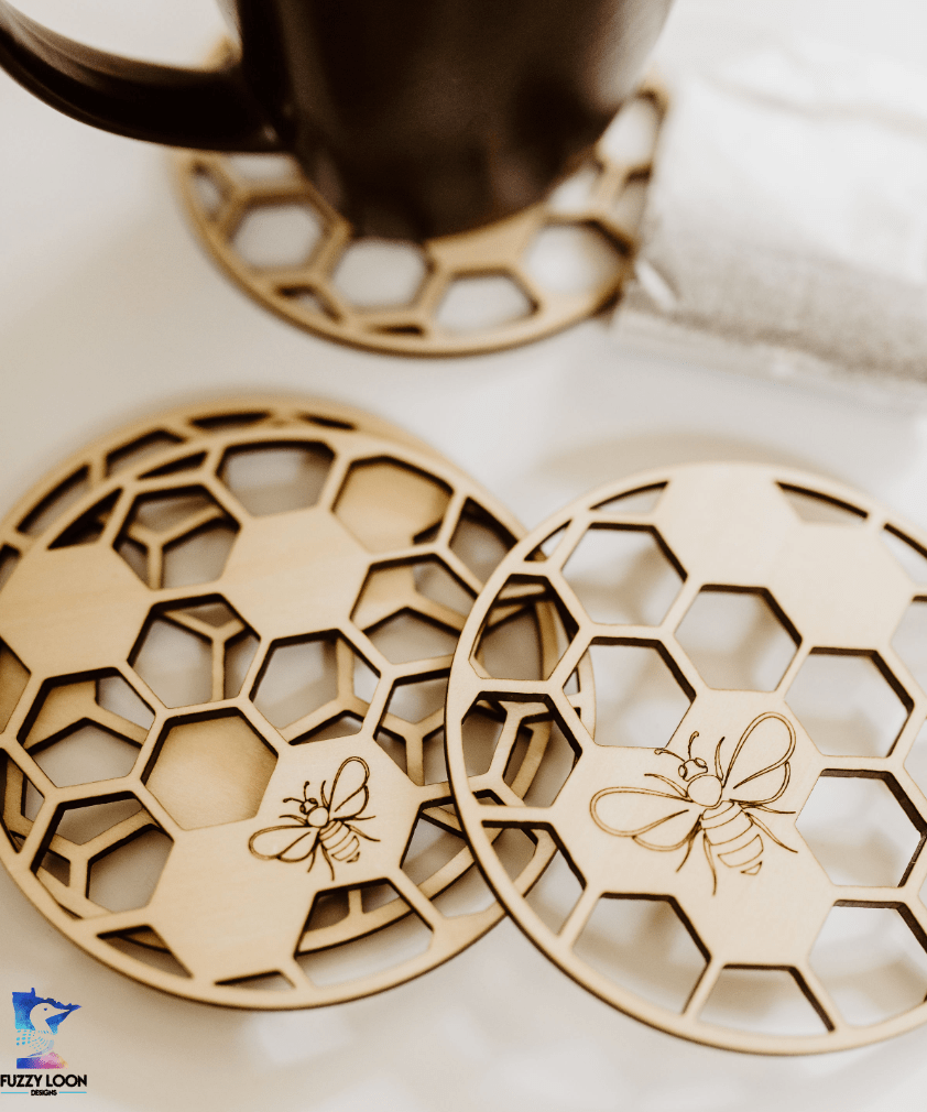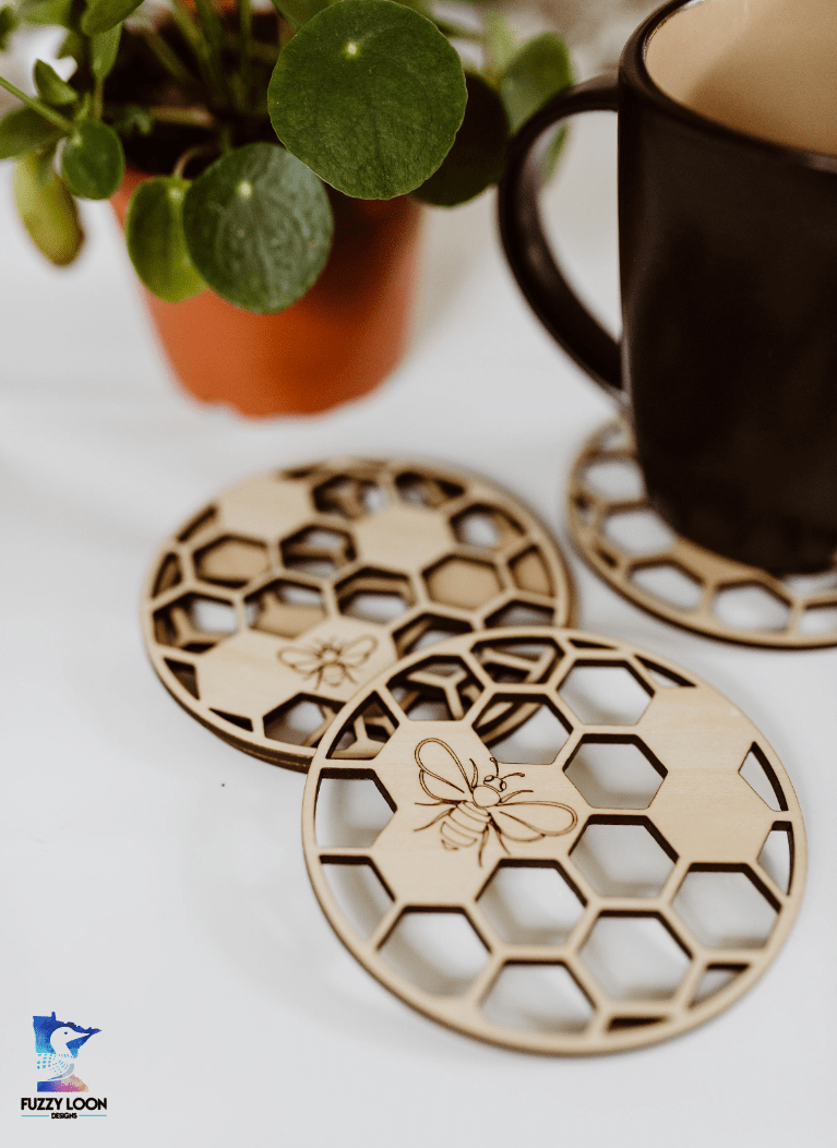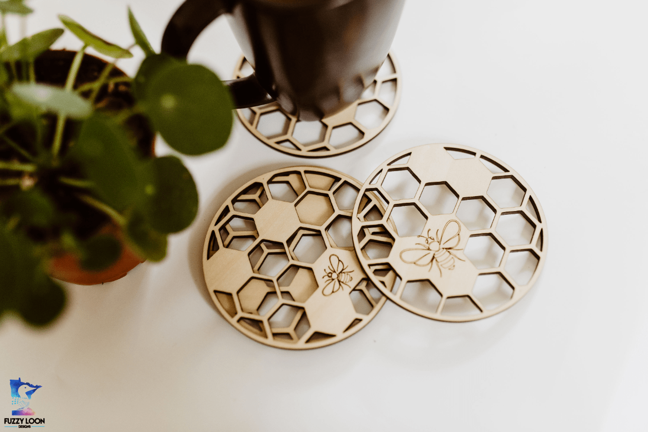 Honeycomb Wood Bumble Bee Coaster Set